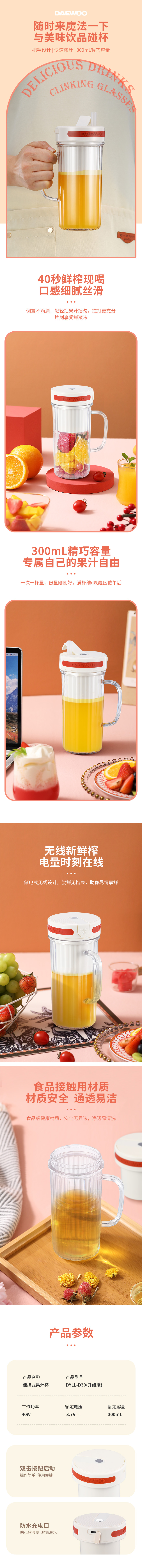大宇(DAEWOO)300ML便携式果汁杯 DYLL-D30升级版单位(台) 海棠红