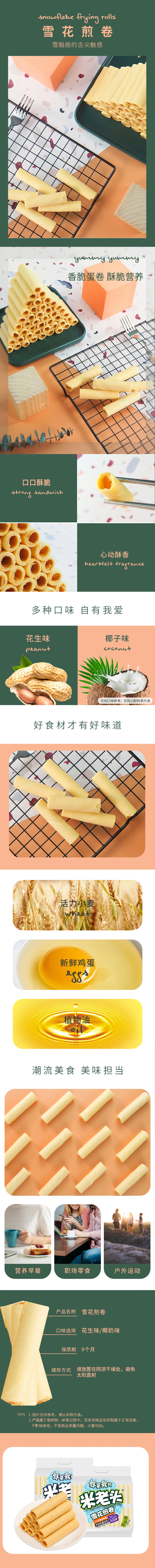 米老头雪花煎卷蛋卷零食香脆 300g*2(单位:包) 椰奶味