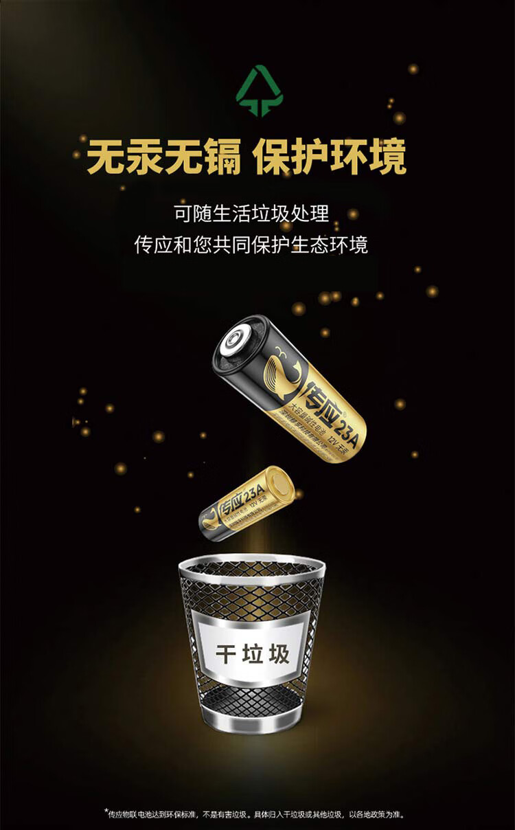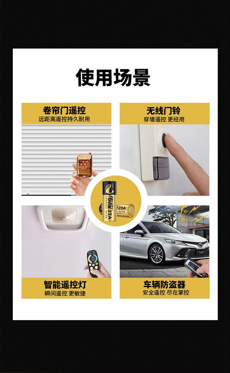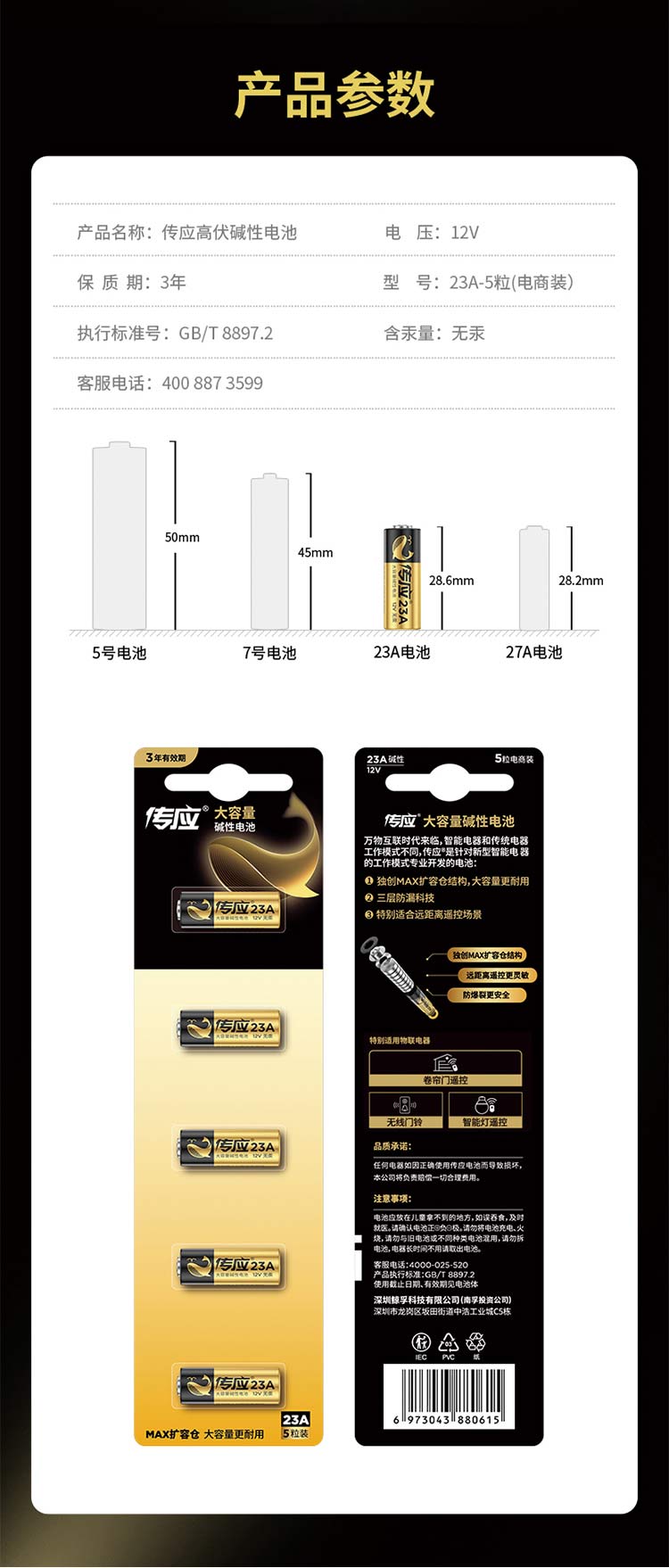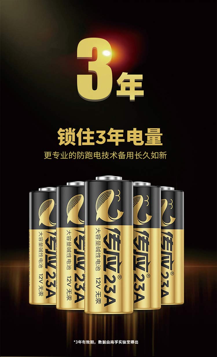 传应南孚 23A12V电池5粒 物联高伏碱性电池 适用车门遥控器电子词典手表血糖仪血氧仪 黄色