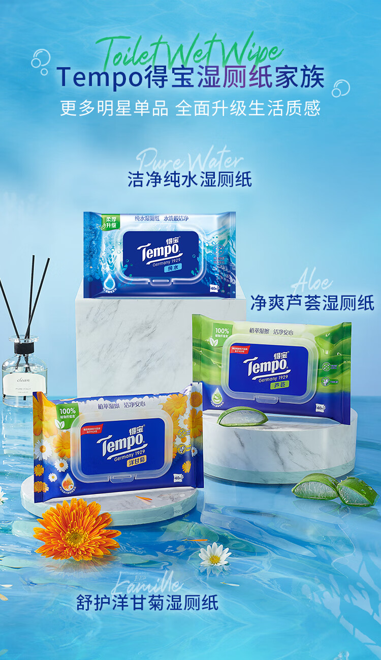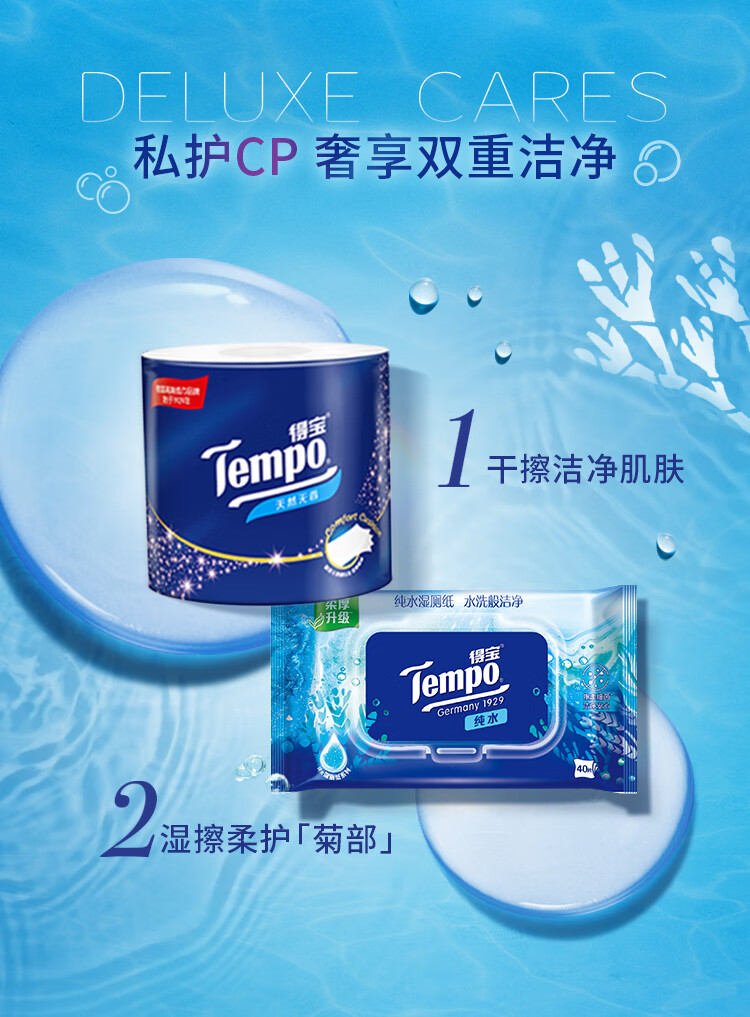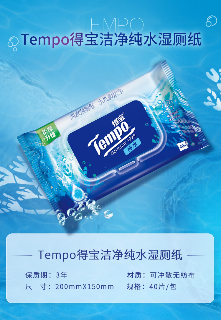 得宝(TEMPO)纯水湿厕纸40片*5包(单位:组) 本白色