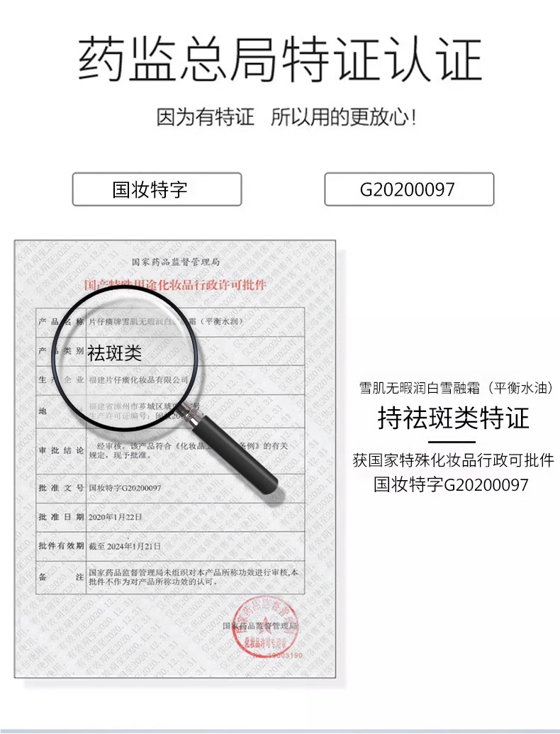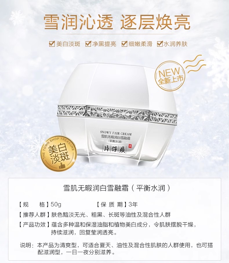 片仔癀牌雪肌无瑕润白雪融霜(平衡水润)50g(单位:瓶) B110