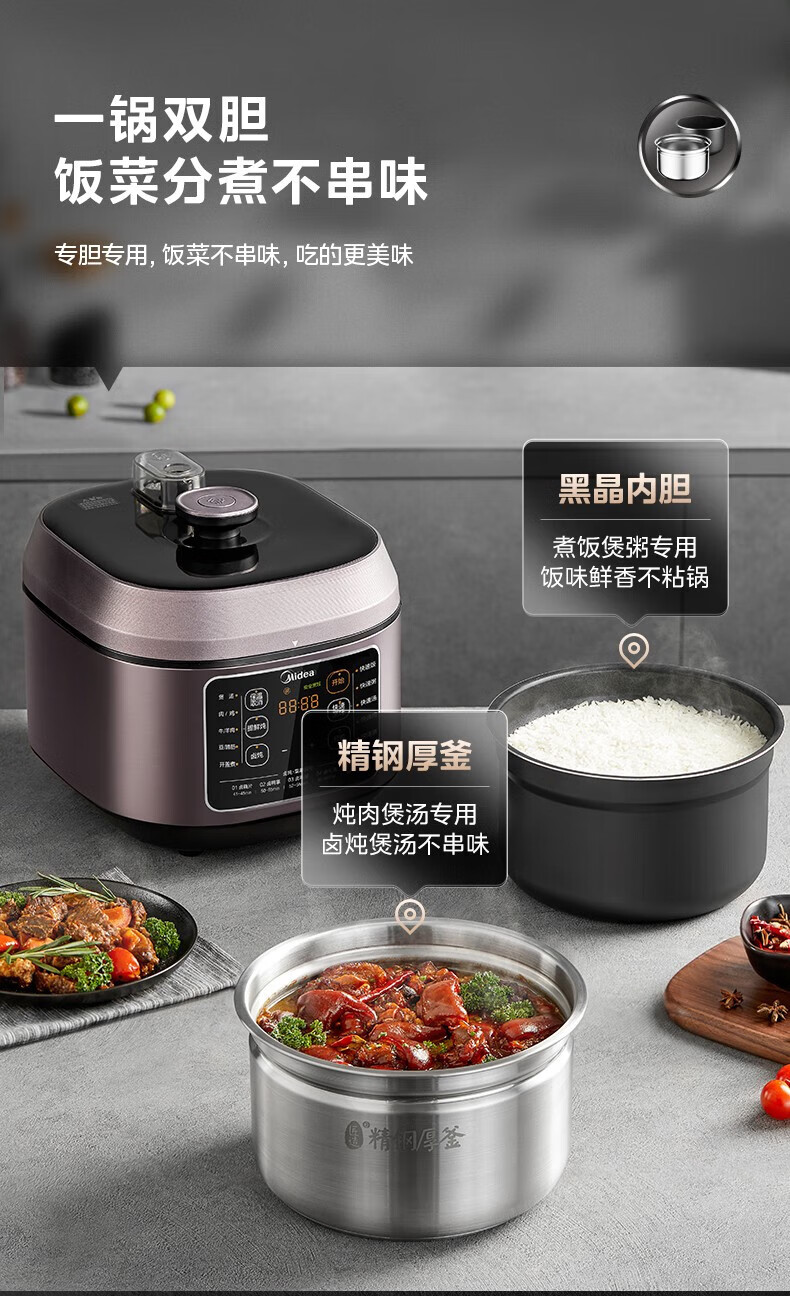 美的电压力锅双胆MY-C540G(单位:台) 棕色