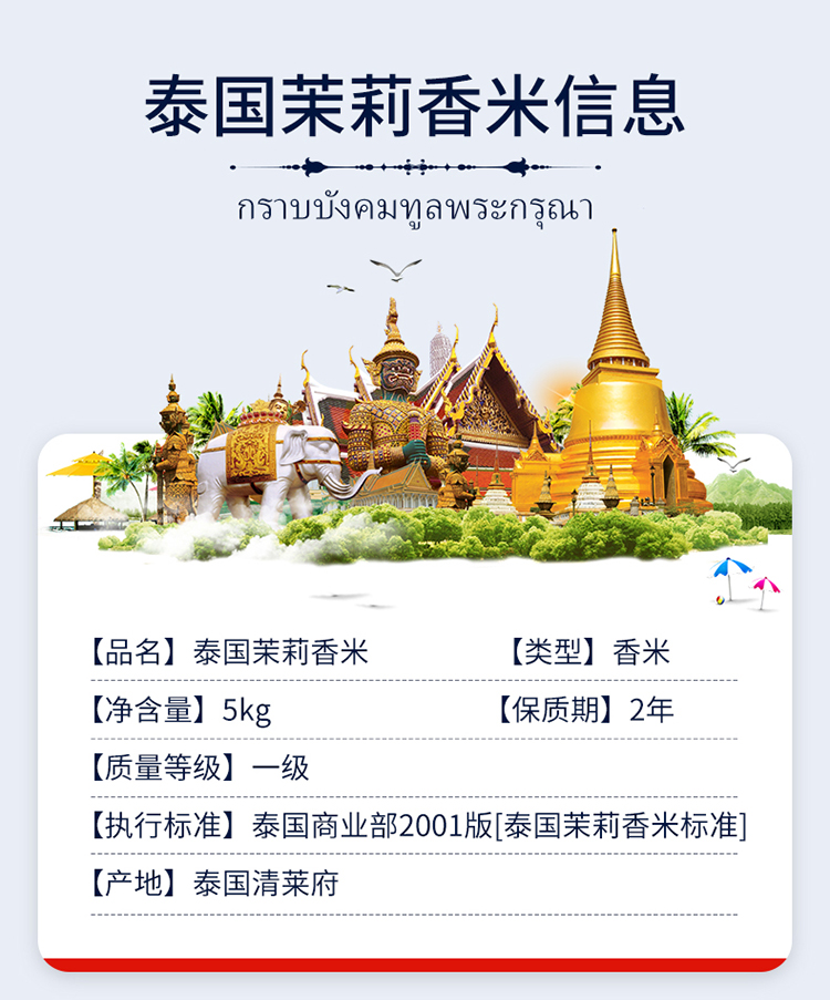 北田金太太原装进口泰国茉莉香米(篮版)5kg单位:袋 宝石蓝