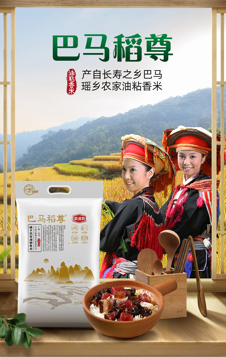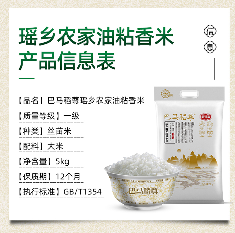 北田巴马稻尊瑶乡农家油粘米5kg/袋 本白色