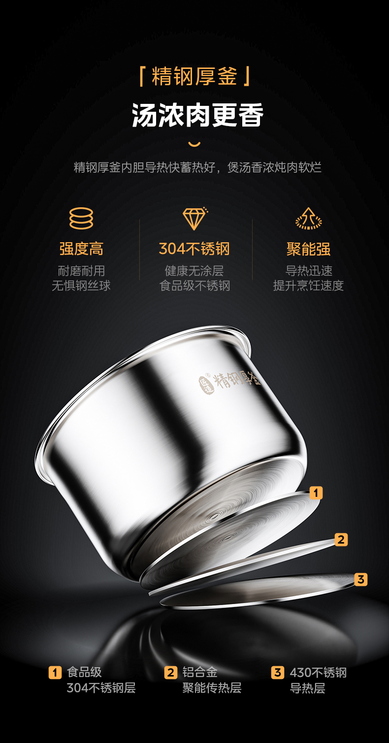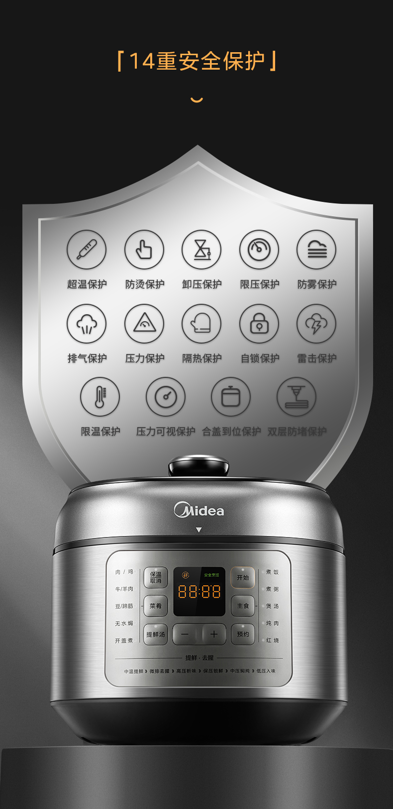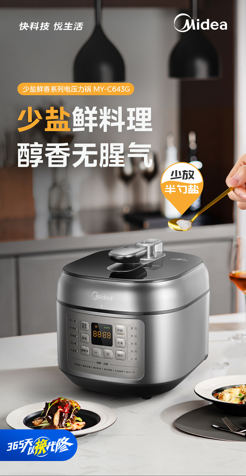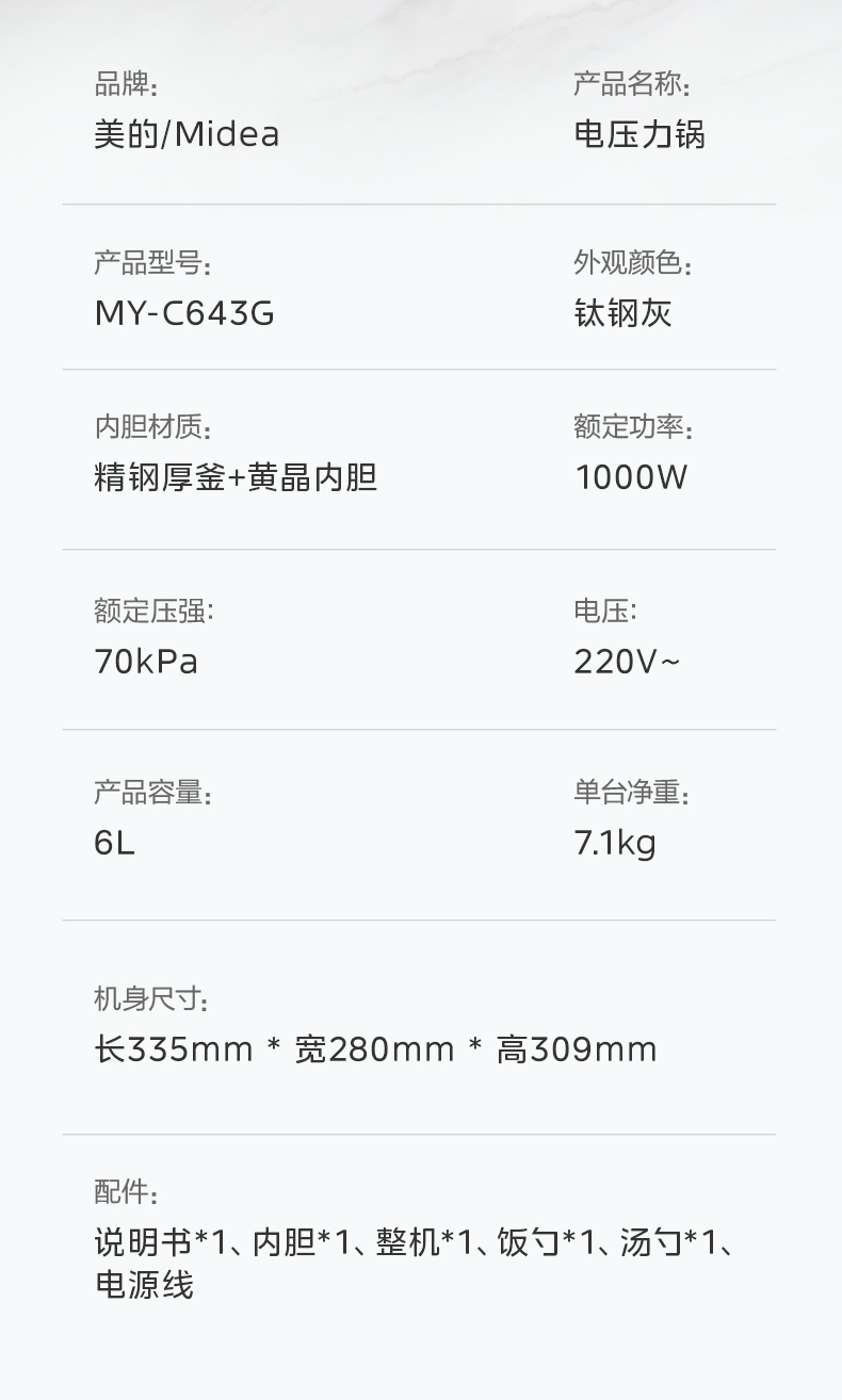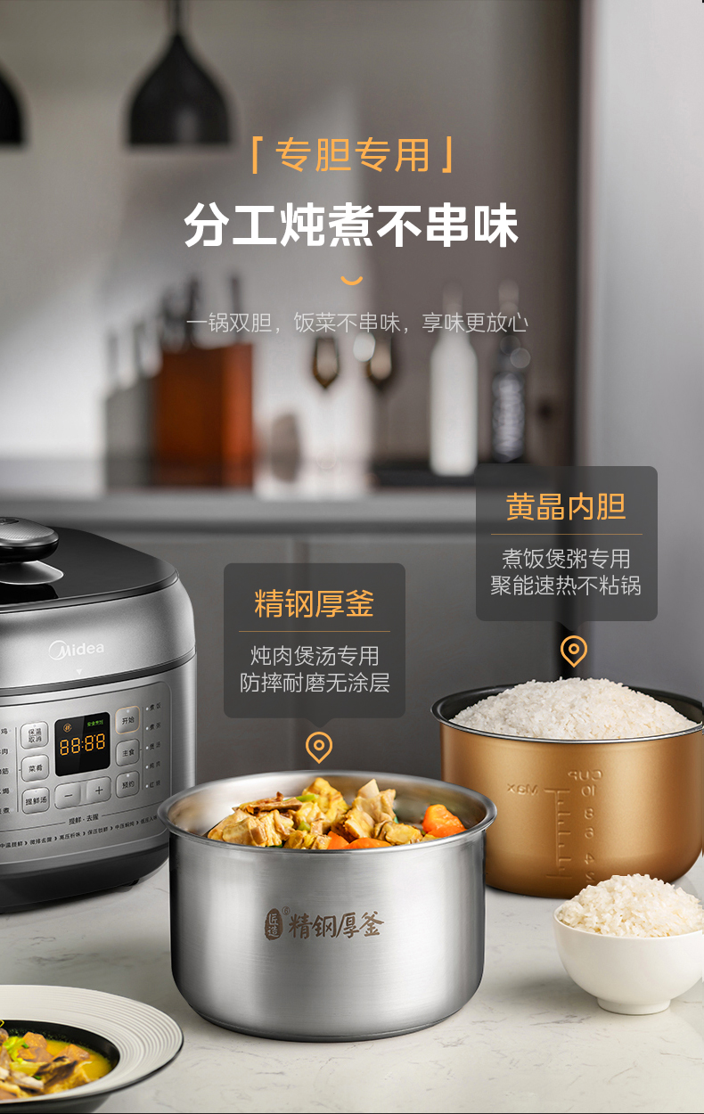 美的(Midea)电压力锅 6升容量双胆 C643G(单位:台) 银色