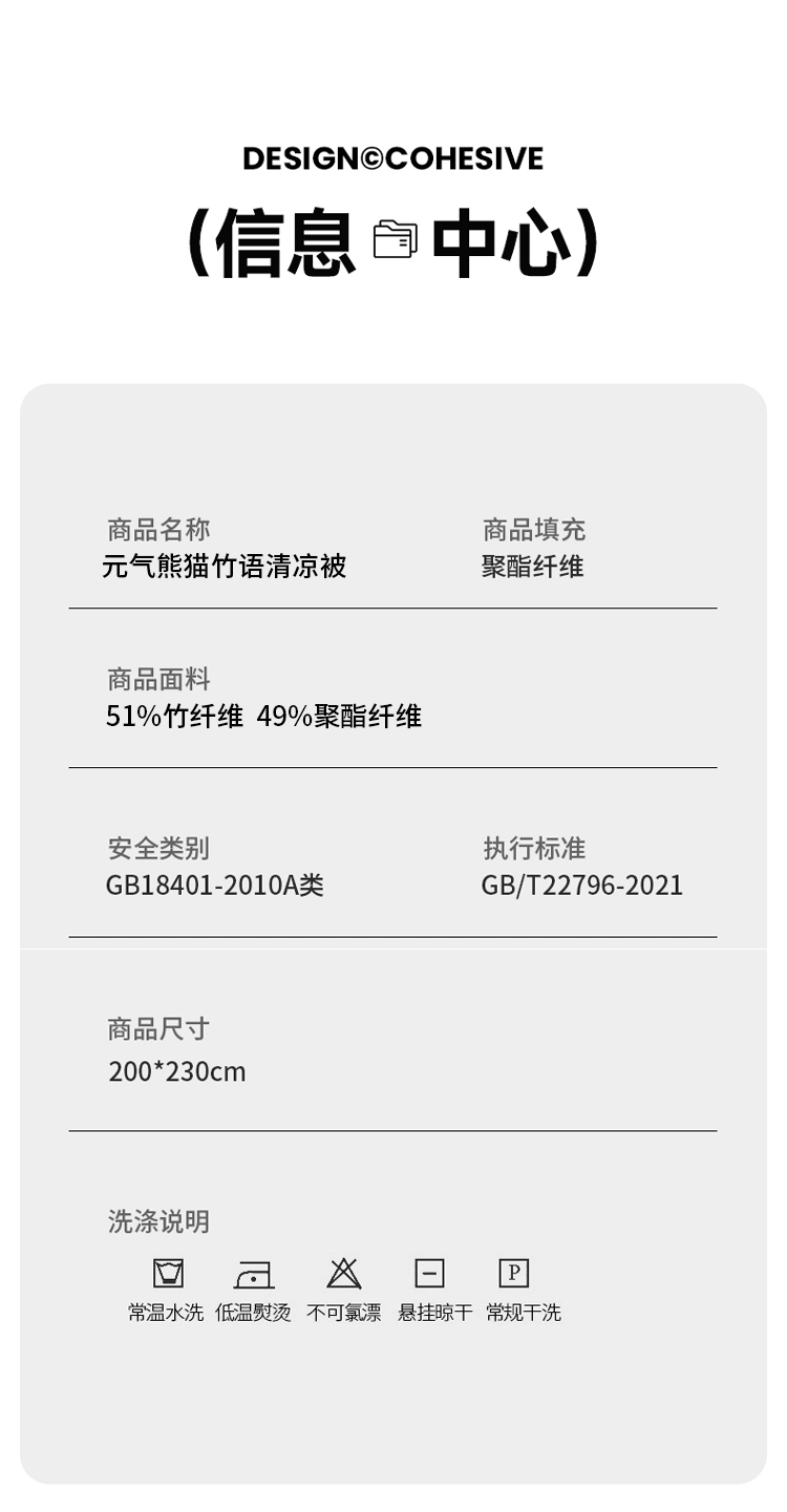 杉杉家纺元气熊猫竹语清凉被1件 200*230cm SS-B1083 元气熊猫竹语清凉被 200*230cm