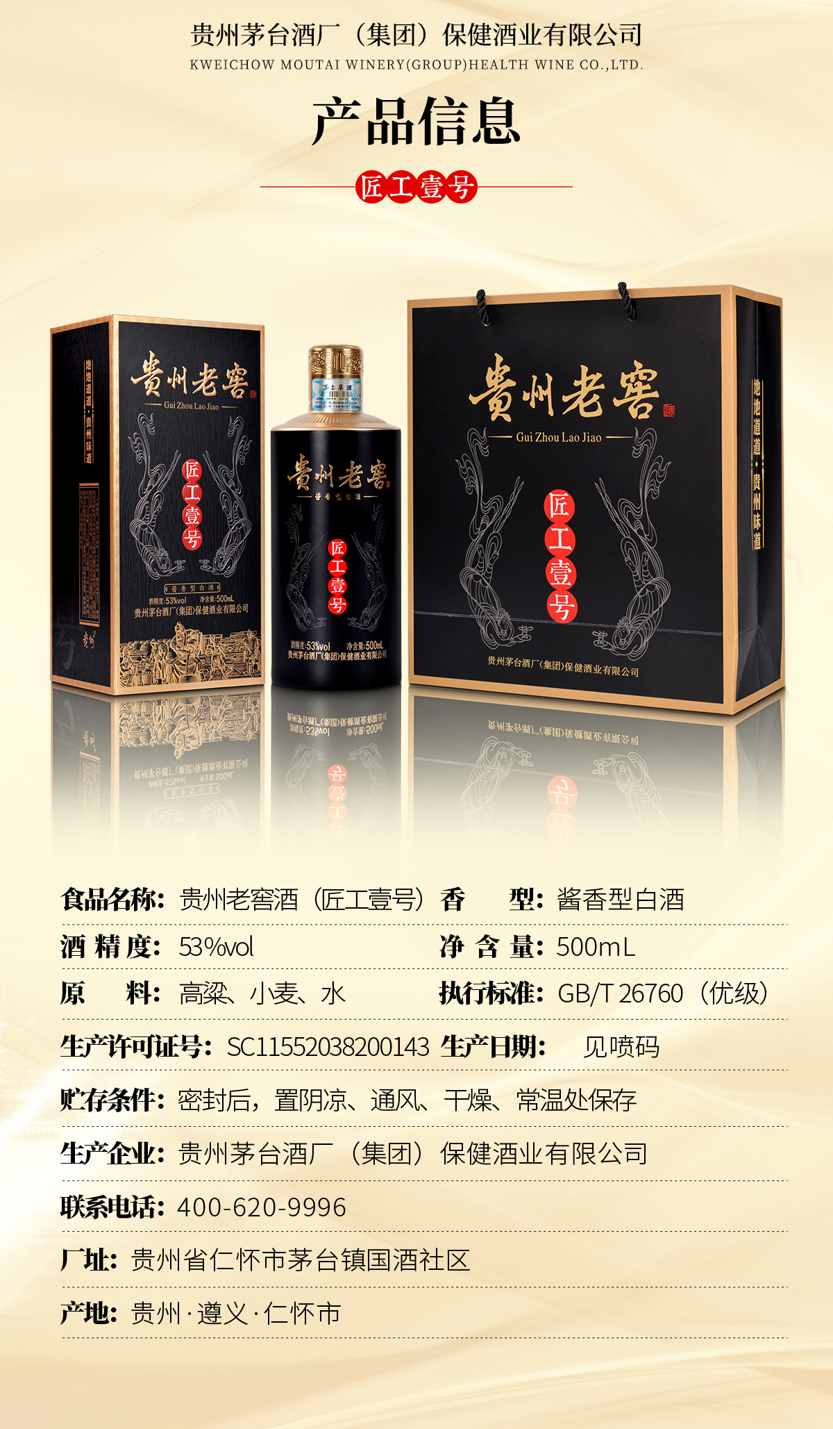 茅台贵州窖匠工壹号酱香酒白酒53度500ml*6瓶整箱 礼盒节日送礼