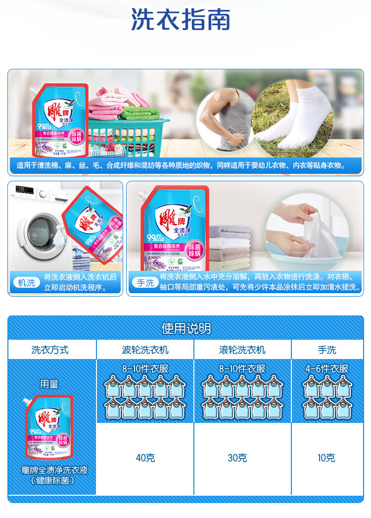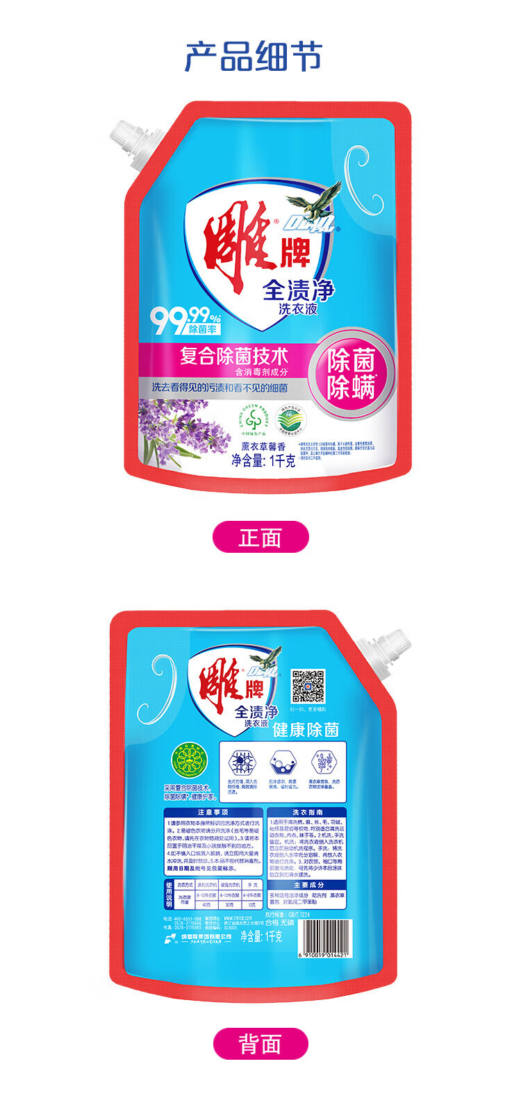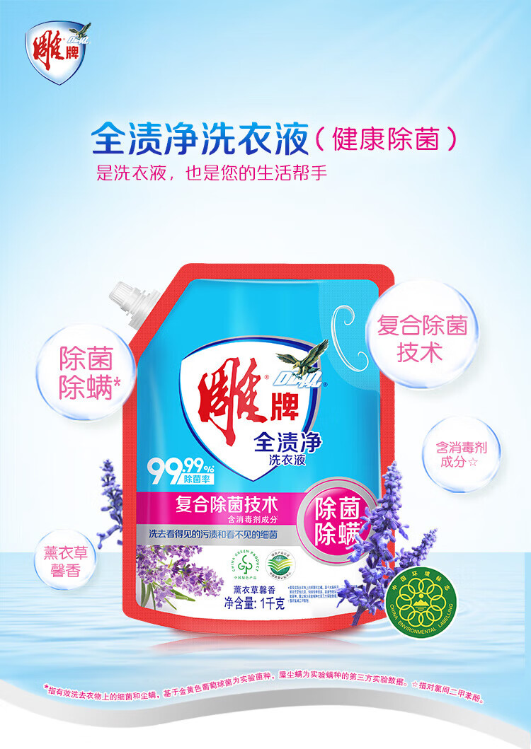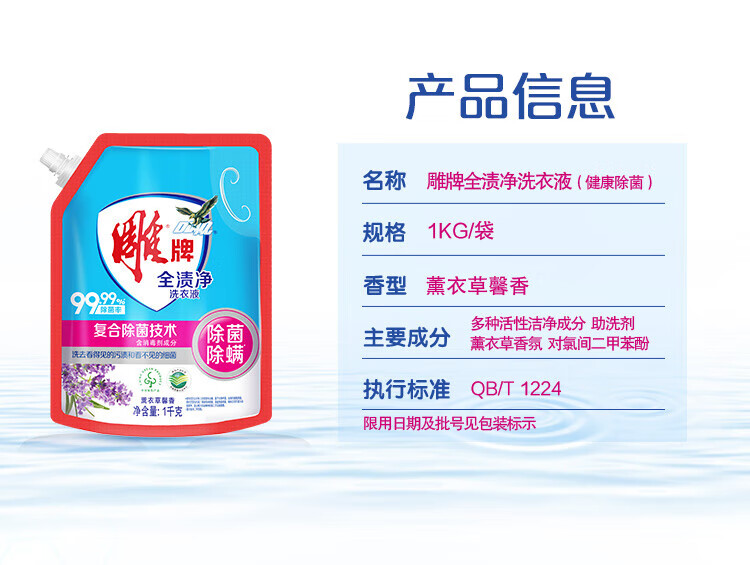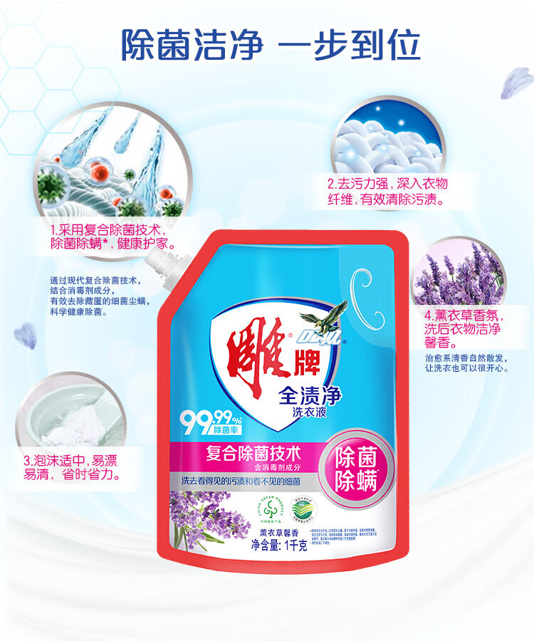 雕牌 薰衣草 健康除菌洗衣液 1kg (单位:袋) 红色