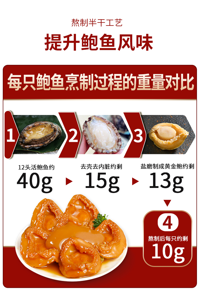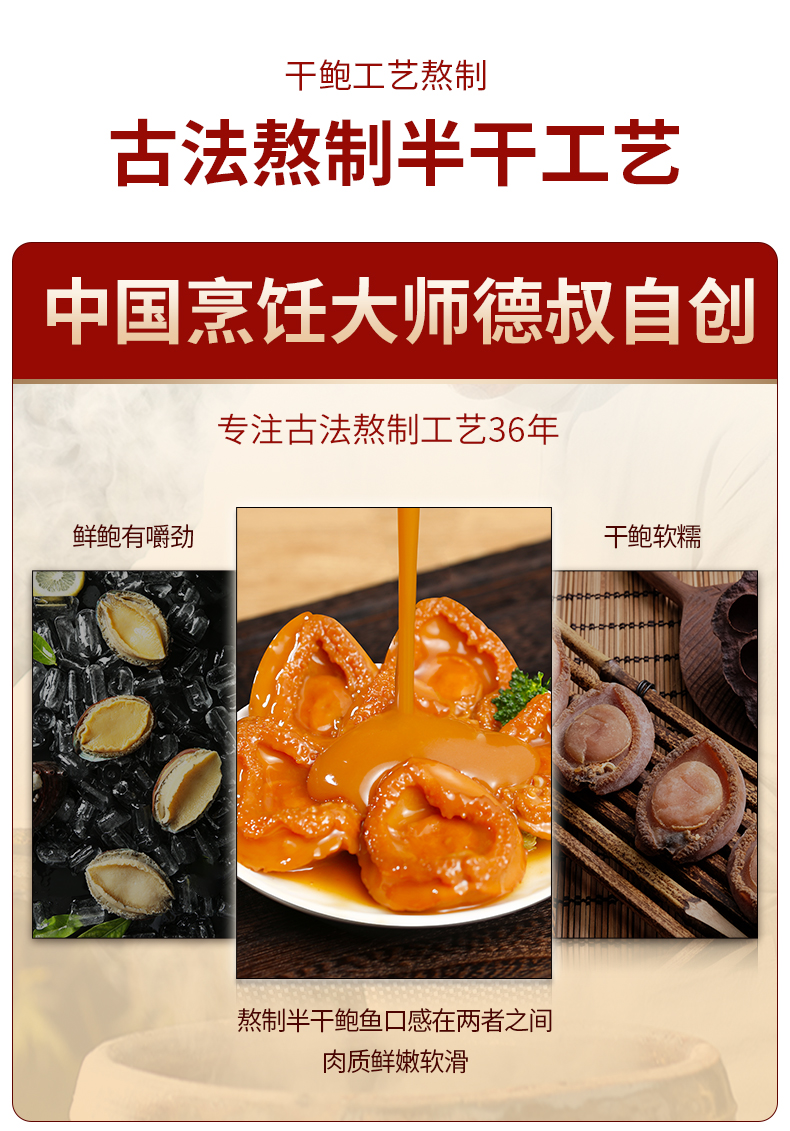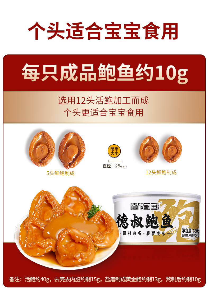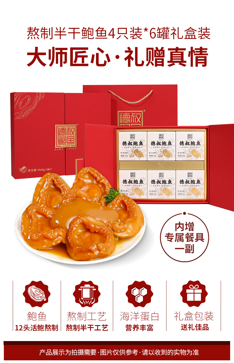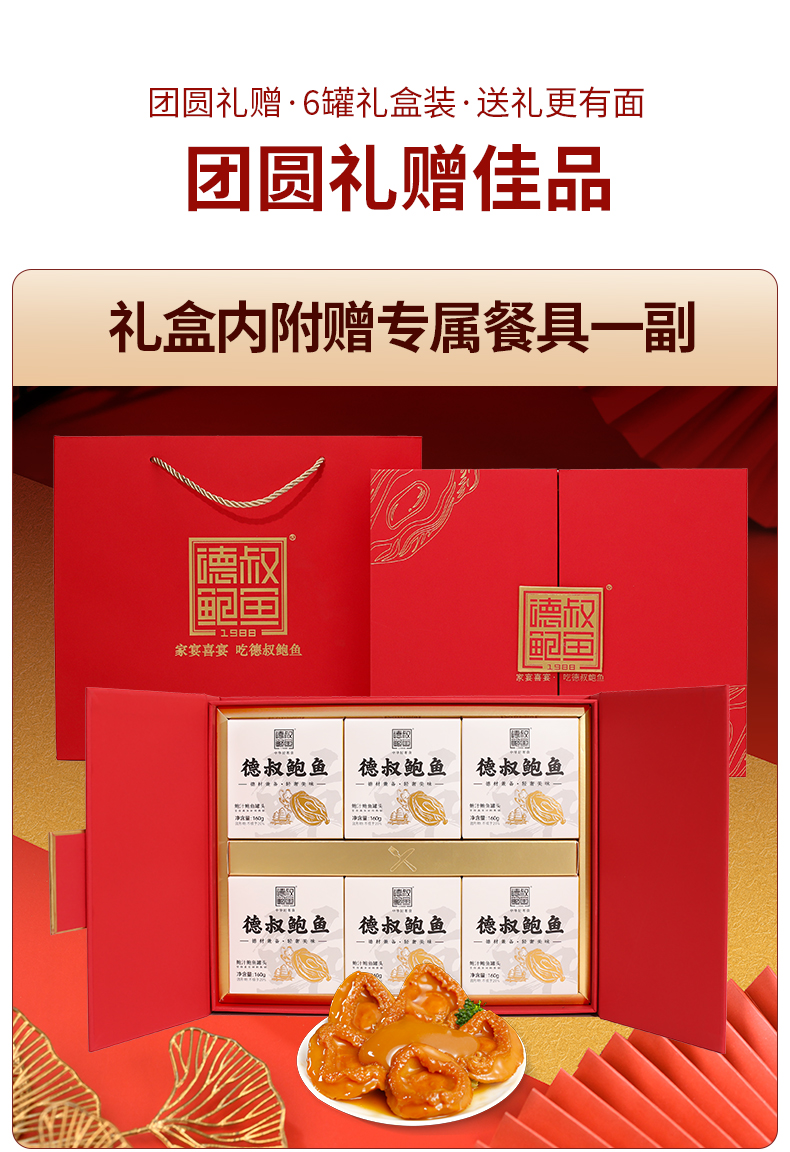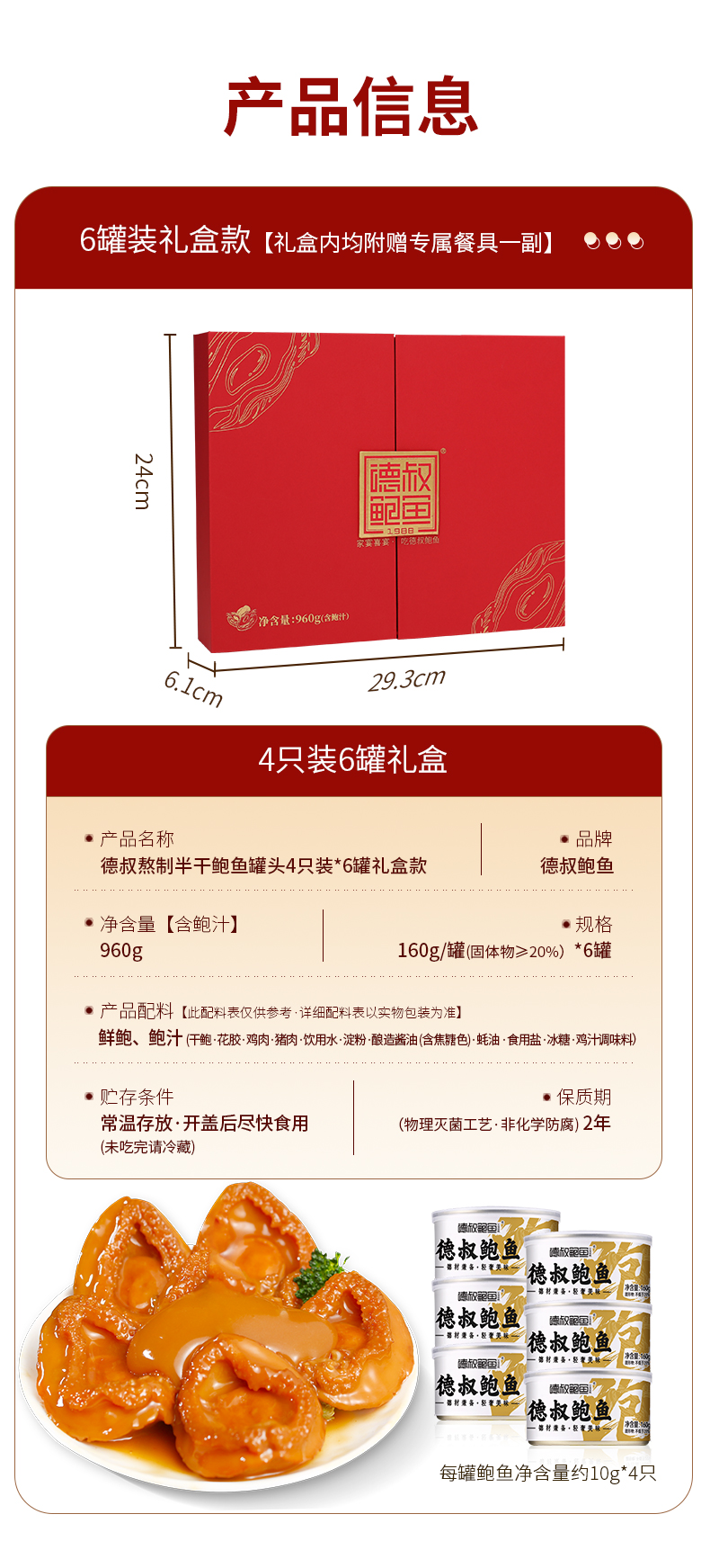 德叔鲍鱼 鲍汁鲍鱼罐头4只装*6罐960g礼盒款 红色