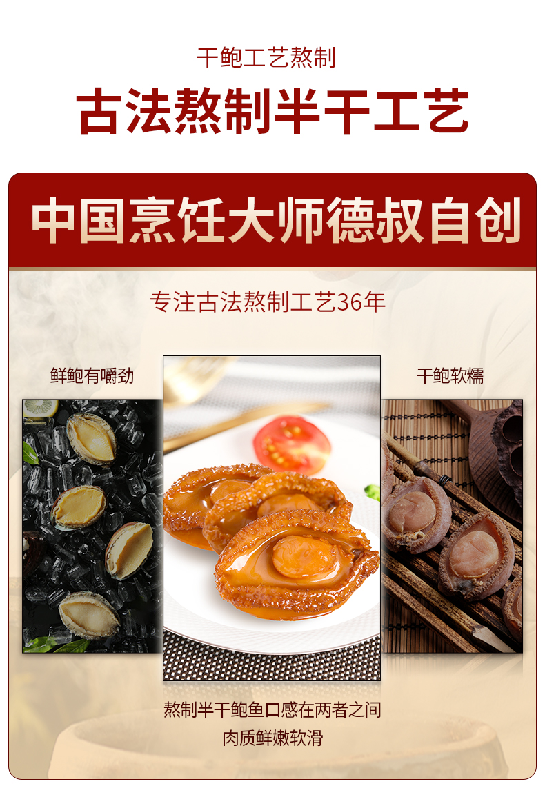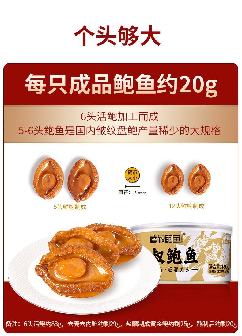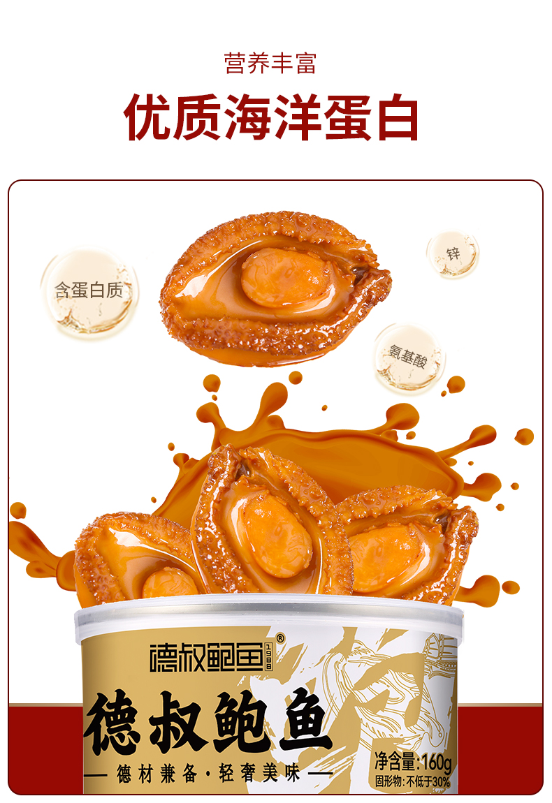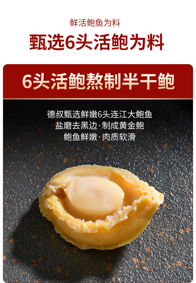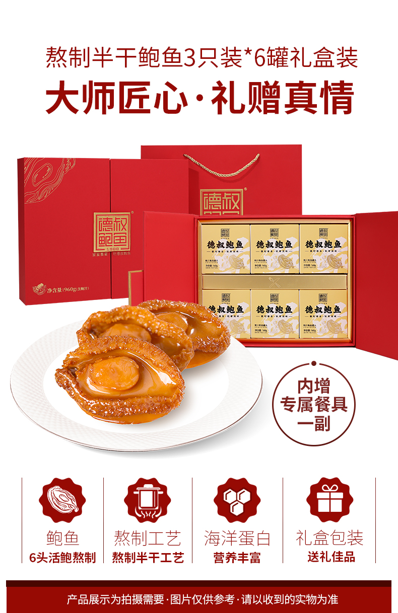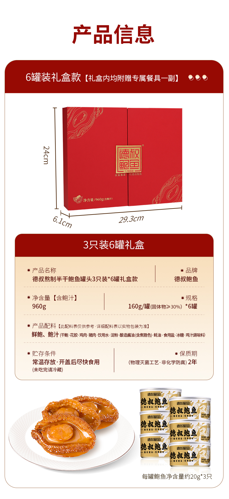 德叔鲍鱼 鲍汁鲍鱼罐头3只装(6头大鲍)*6罐960g礼盒款 红色