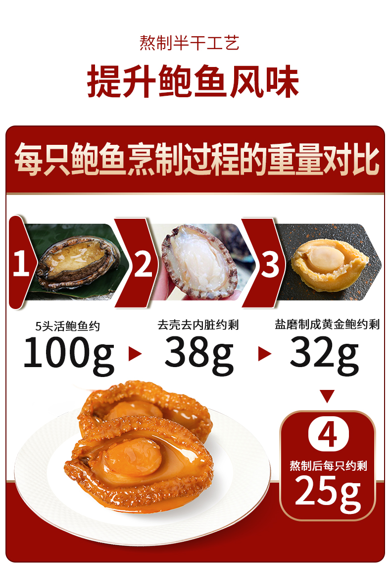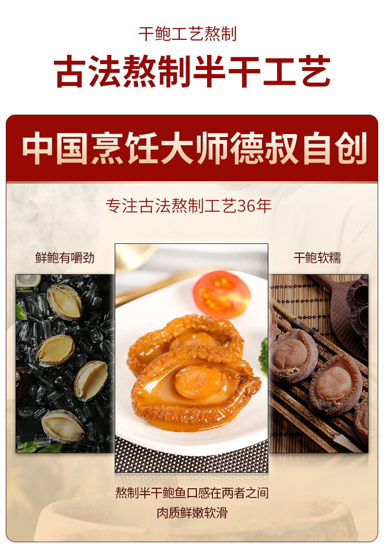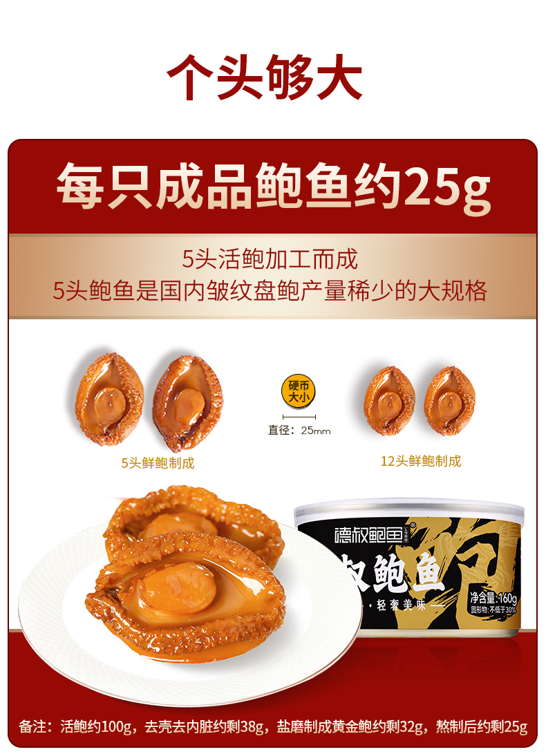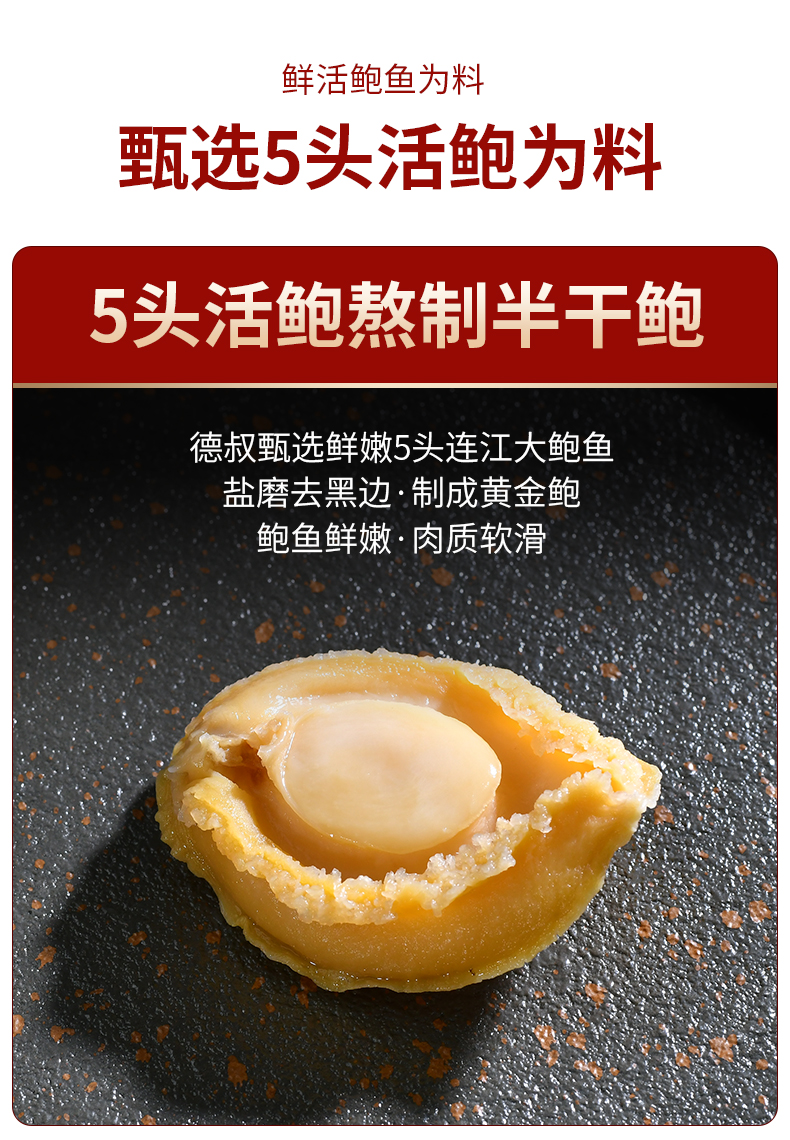 德叔鲍鱼 鲍汁鲍鱼罐头2只装(5头大鲍)*6罐960g礼盒款 红色
