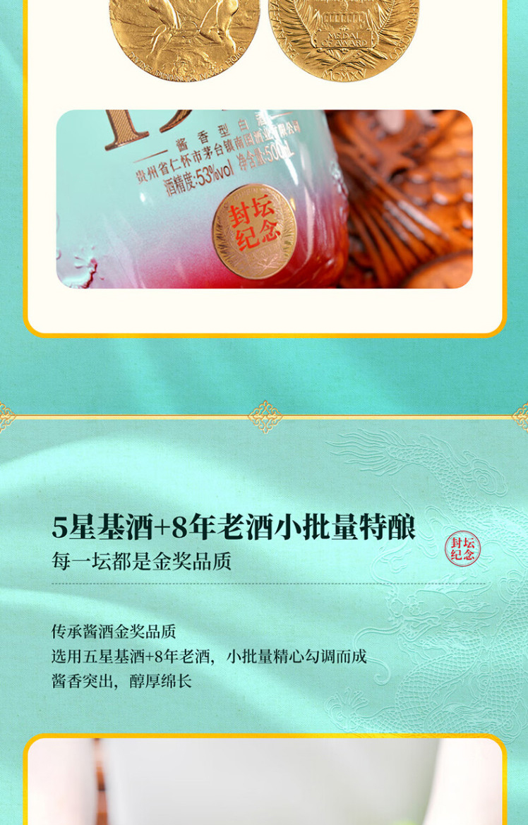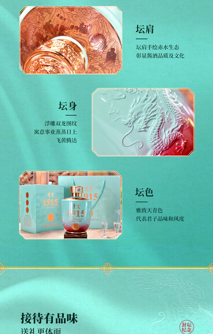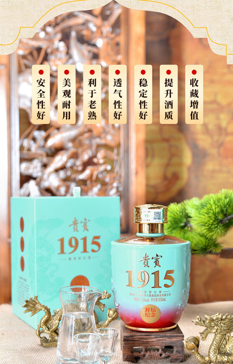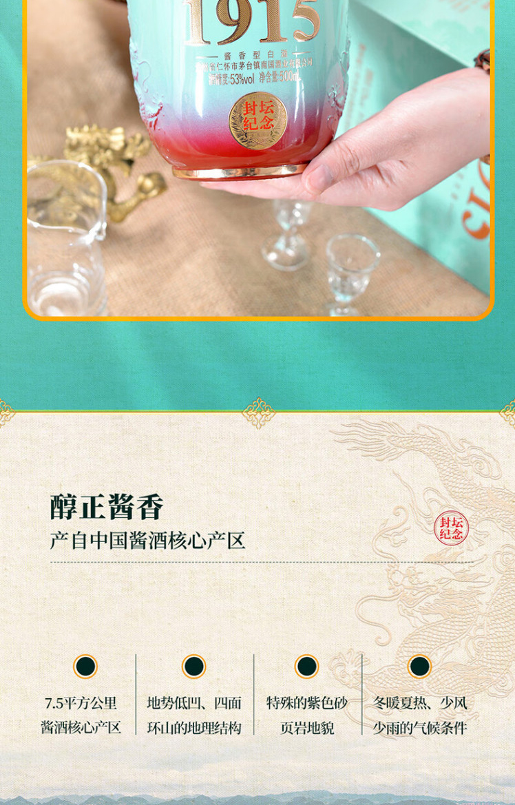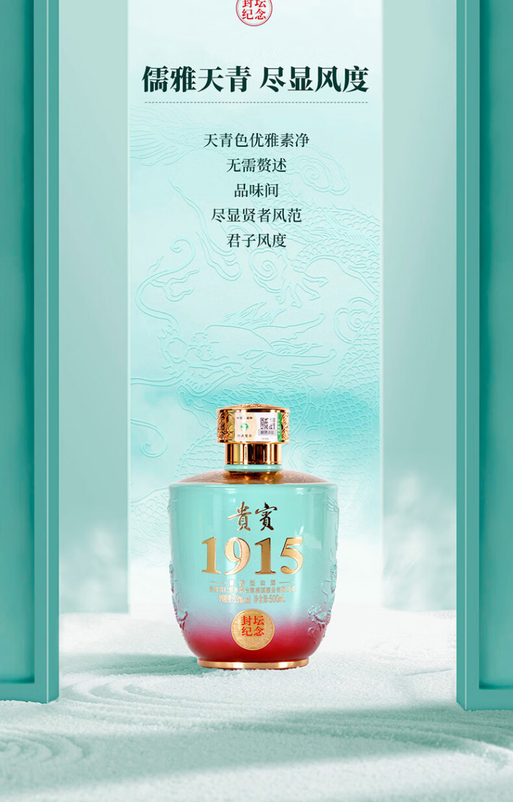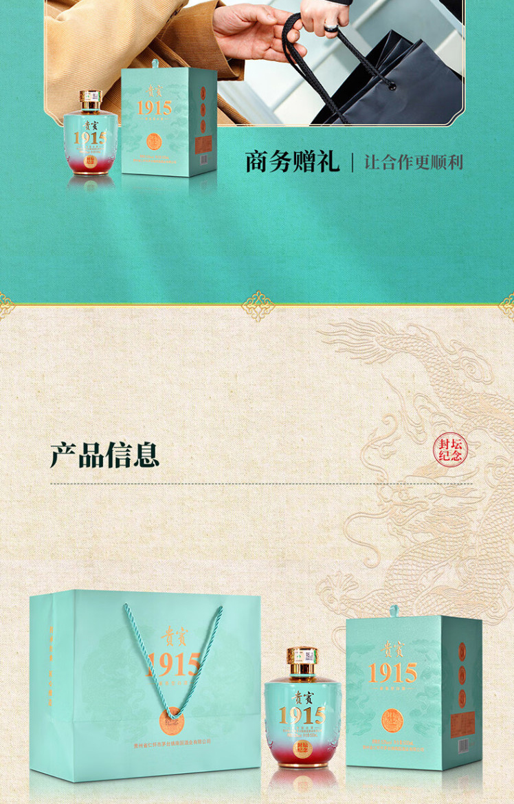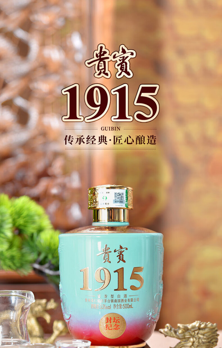 匠工之品 贵州茅台镇 高度粮食礼盒装 53度酱香型白酒贵宾1915大坛1500mL 1坛 天青色