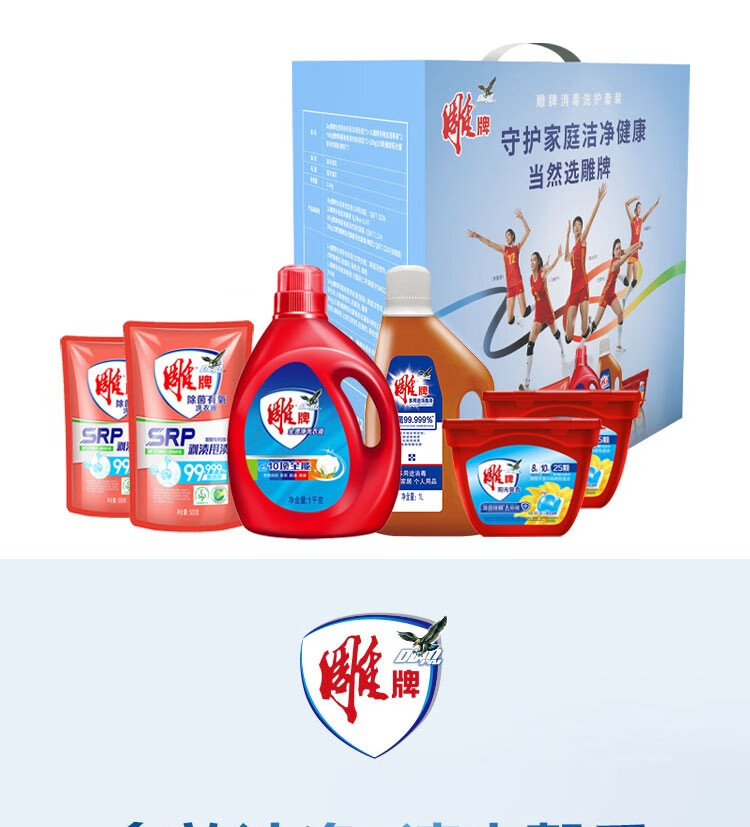雕牌消毒洗护套装ZS0396(洗衣液1kg+消毒液1L+洗衣液500g*2+凝珠200g(25颗)* 红色