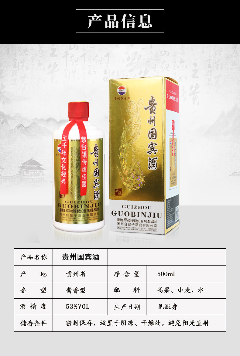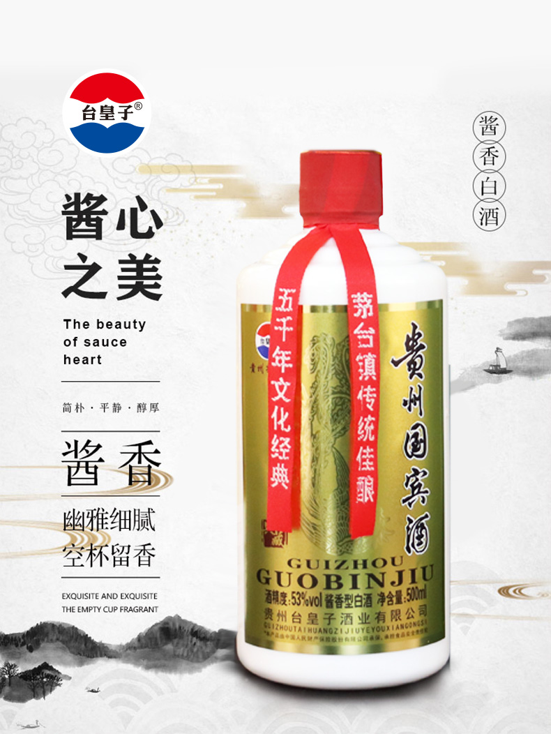 台皇子贵州茅台镇国宾酒53度酱香型白酒500ml*6瓶 整箱