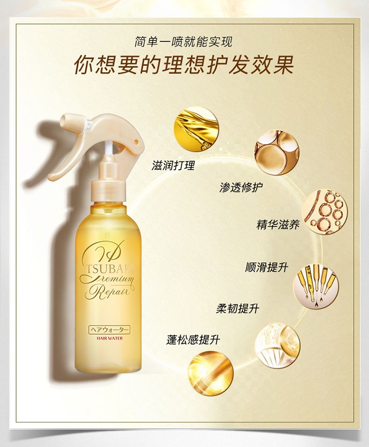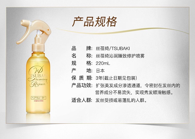 丝蓓绮(TSUBAKI)沁润臻致修护喷雾220ml 金色
