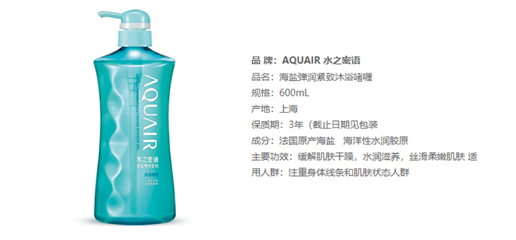 资生堂水之密语海盐弹润紧致沐浴啫喱600ml 蓝色