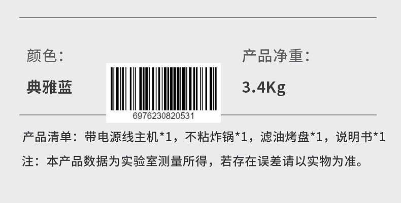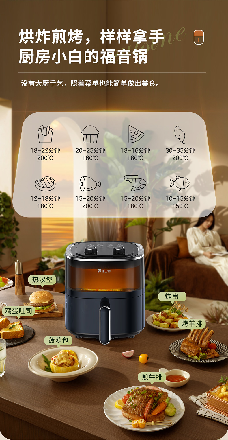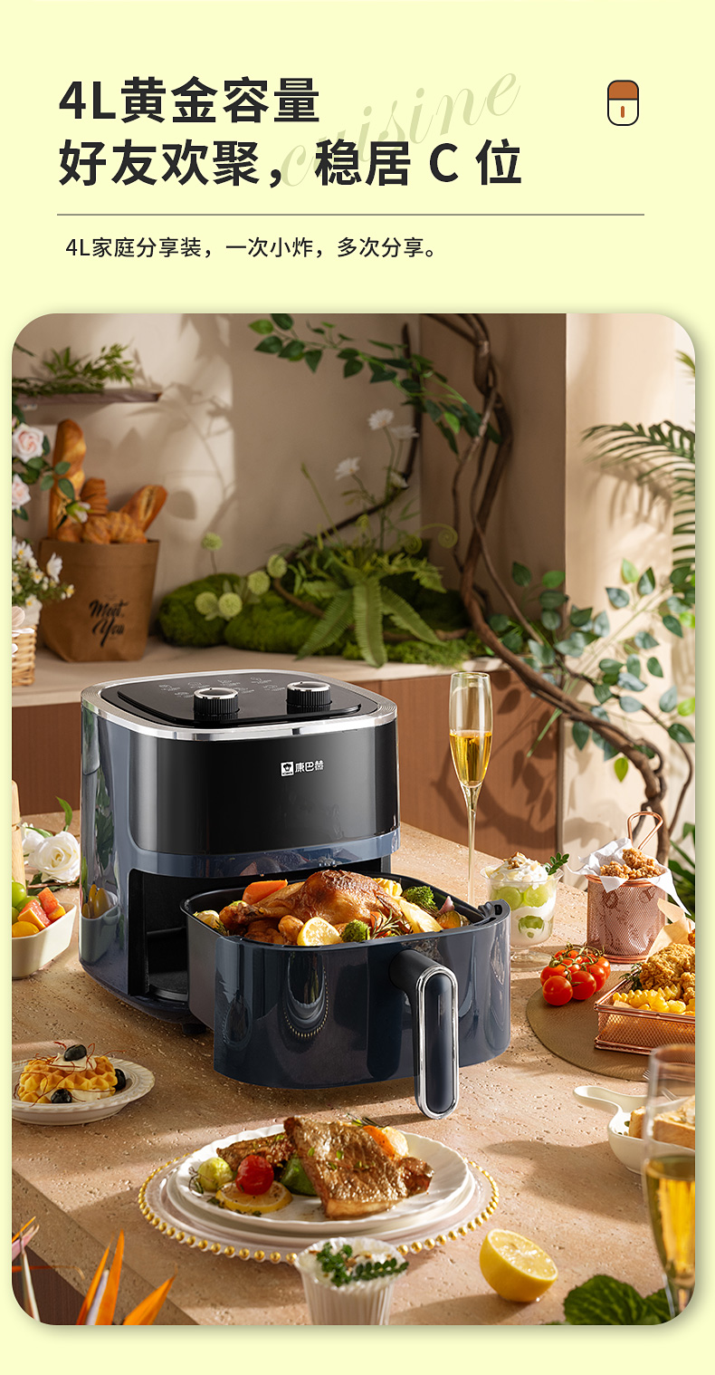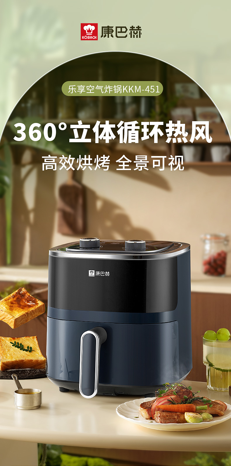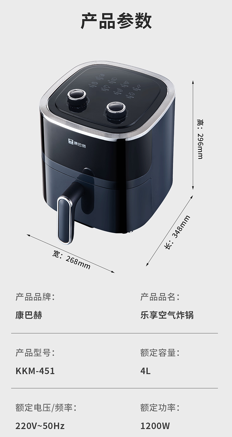 康巴赫-乐享空气炸锅4L KKM-451(单位:台) 典雅蓝