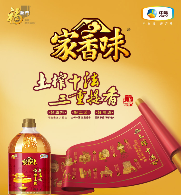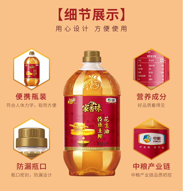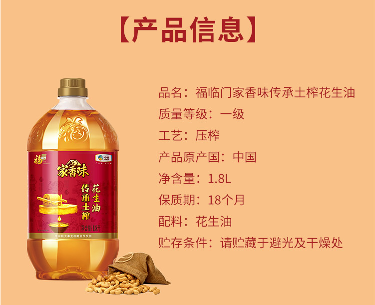 福临门家香味土榨花生油1.8L/瓶 自然色