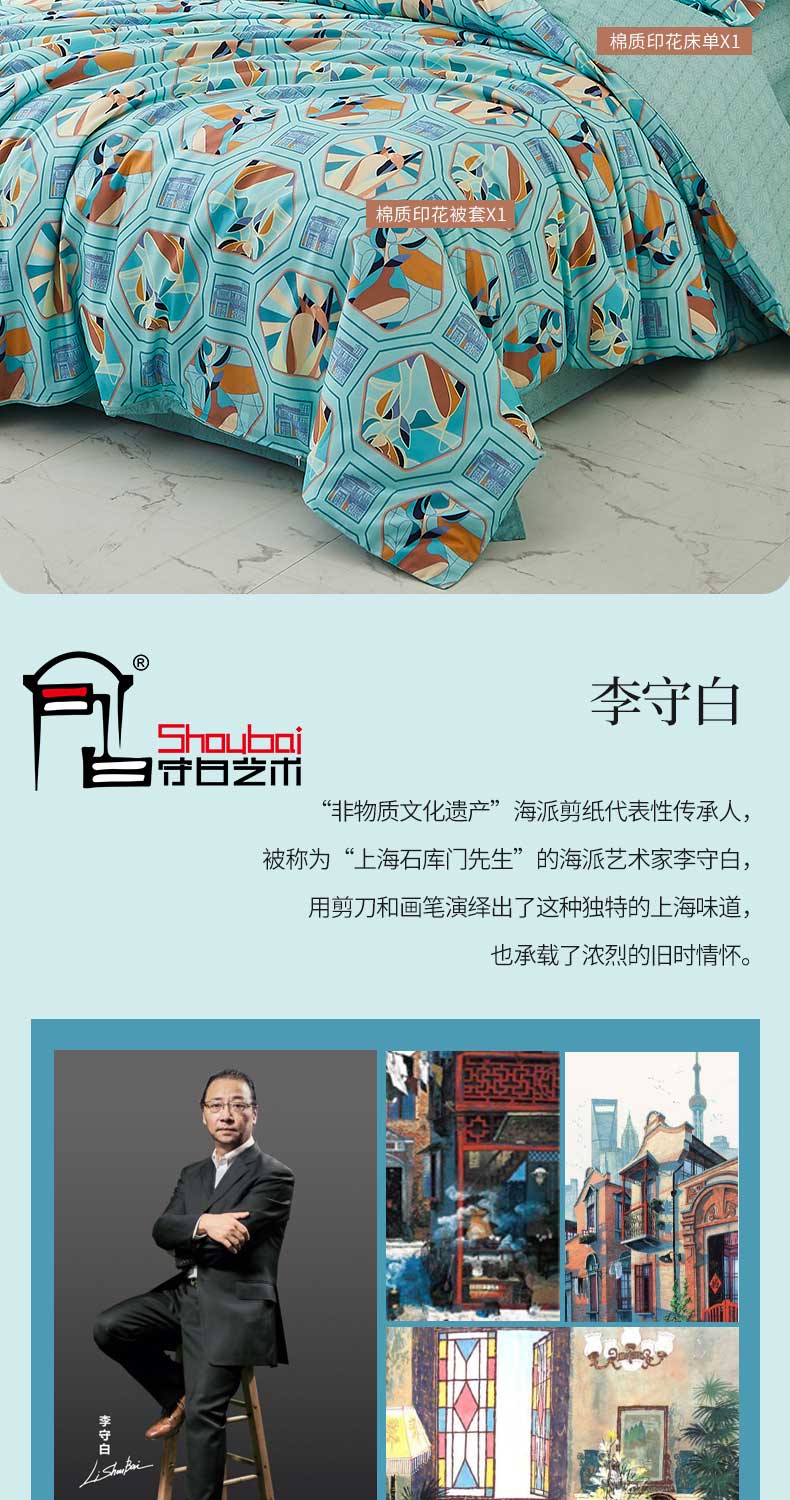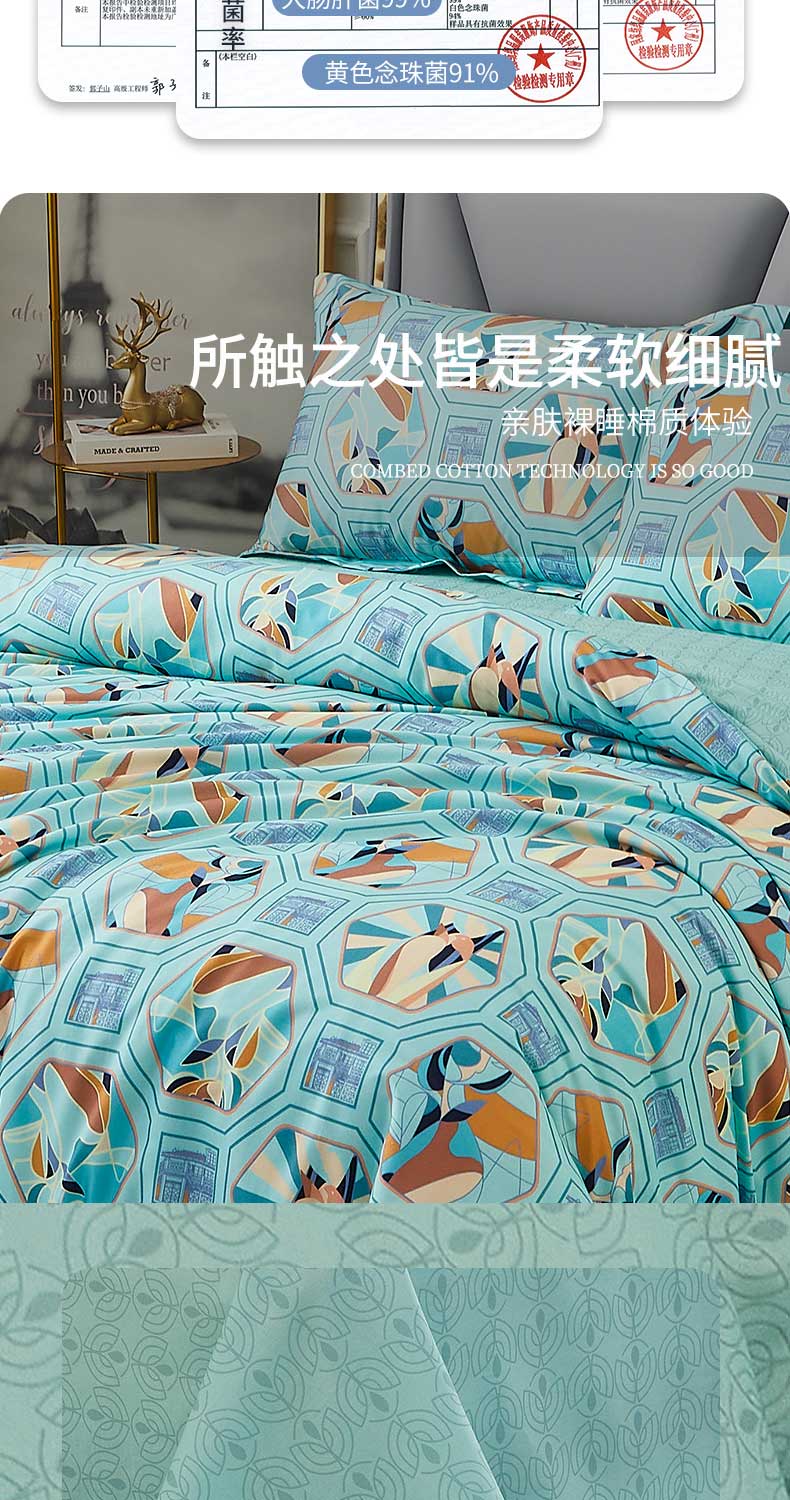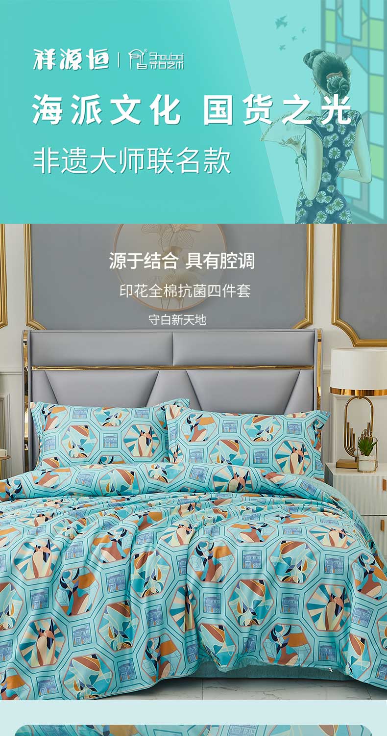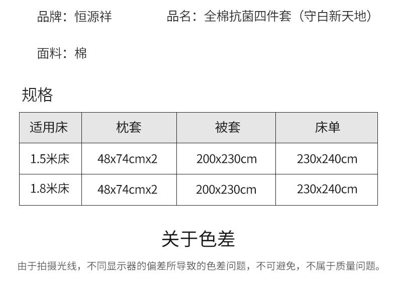 恒源祥全棉抗菌四件套 (守白新天地)HYX143TJ被套:200x230cm