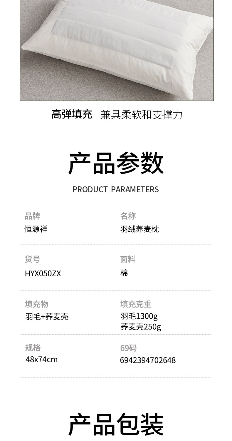 恒源祥羽绒荞麦枕HYX050ZX(单位:只)48*74cm