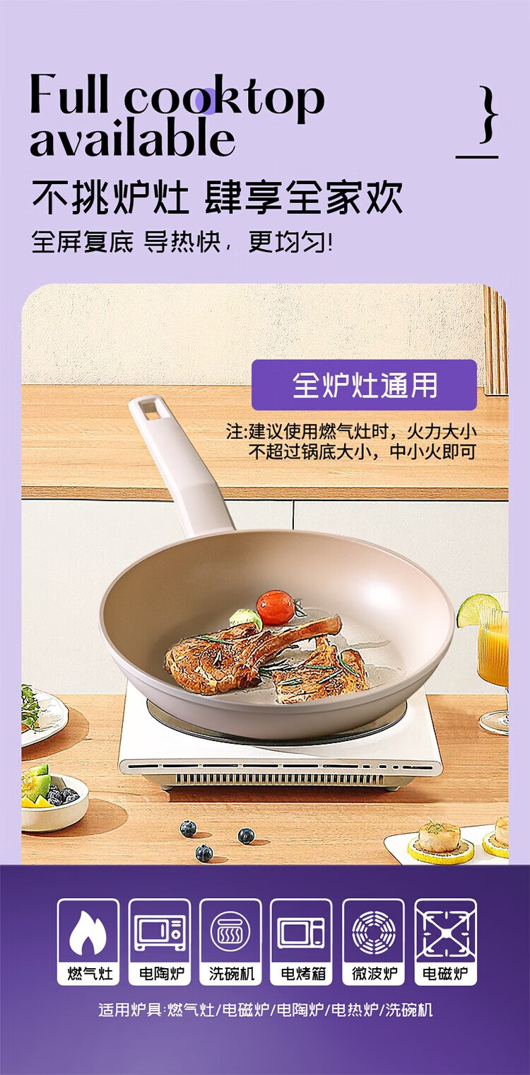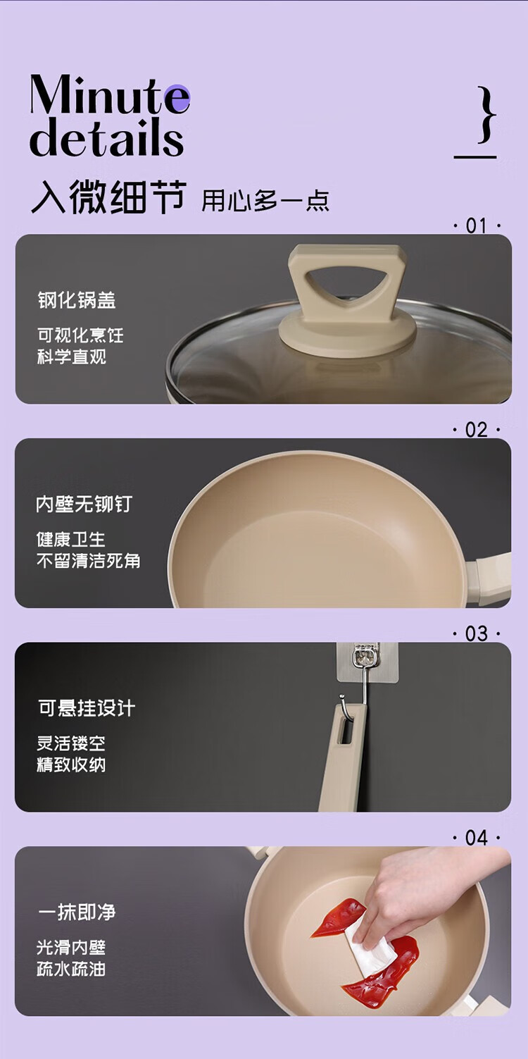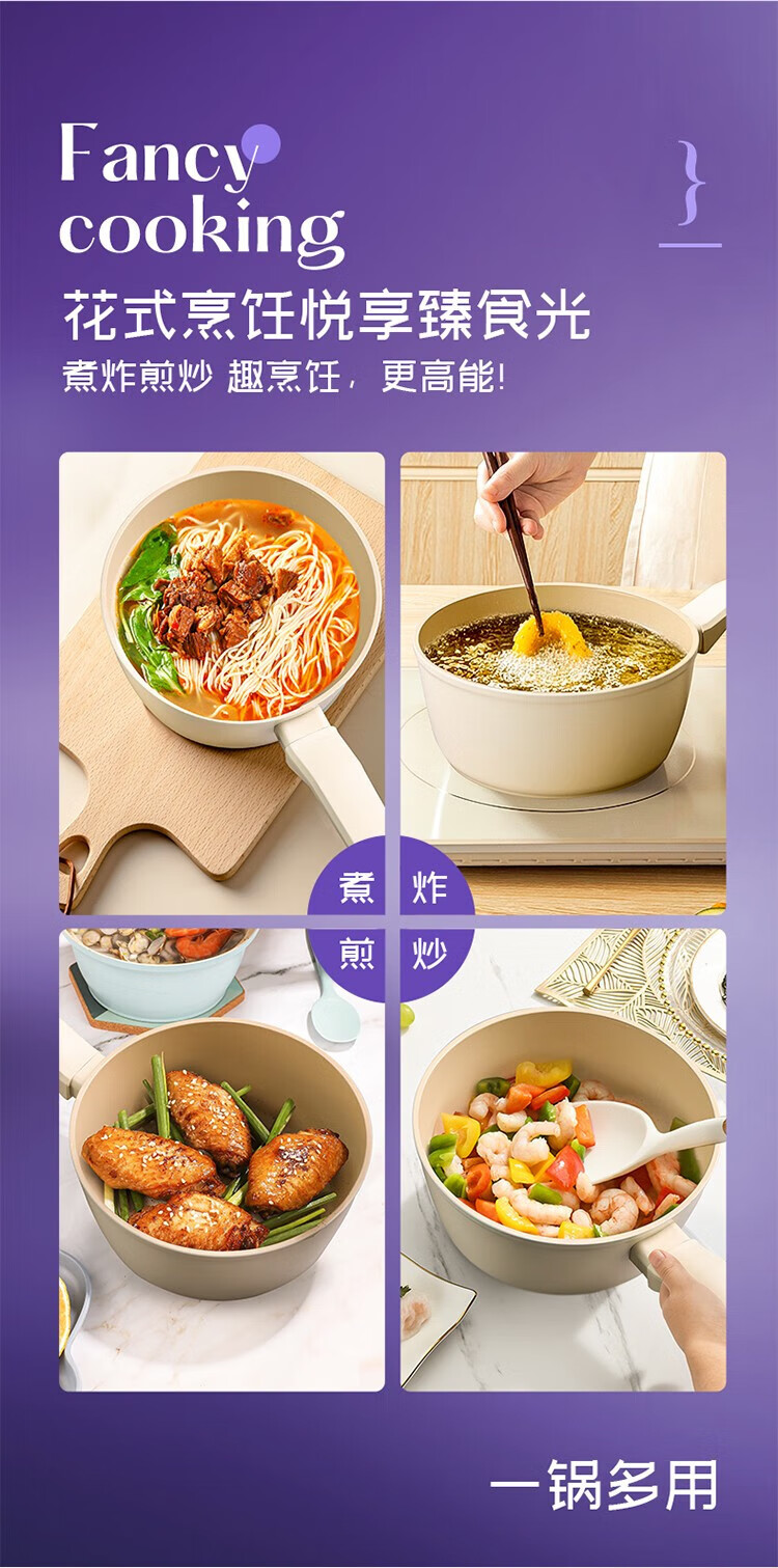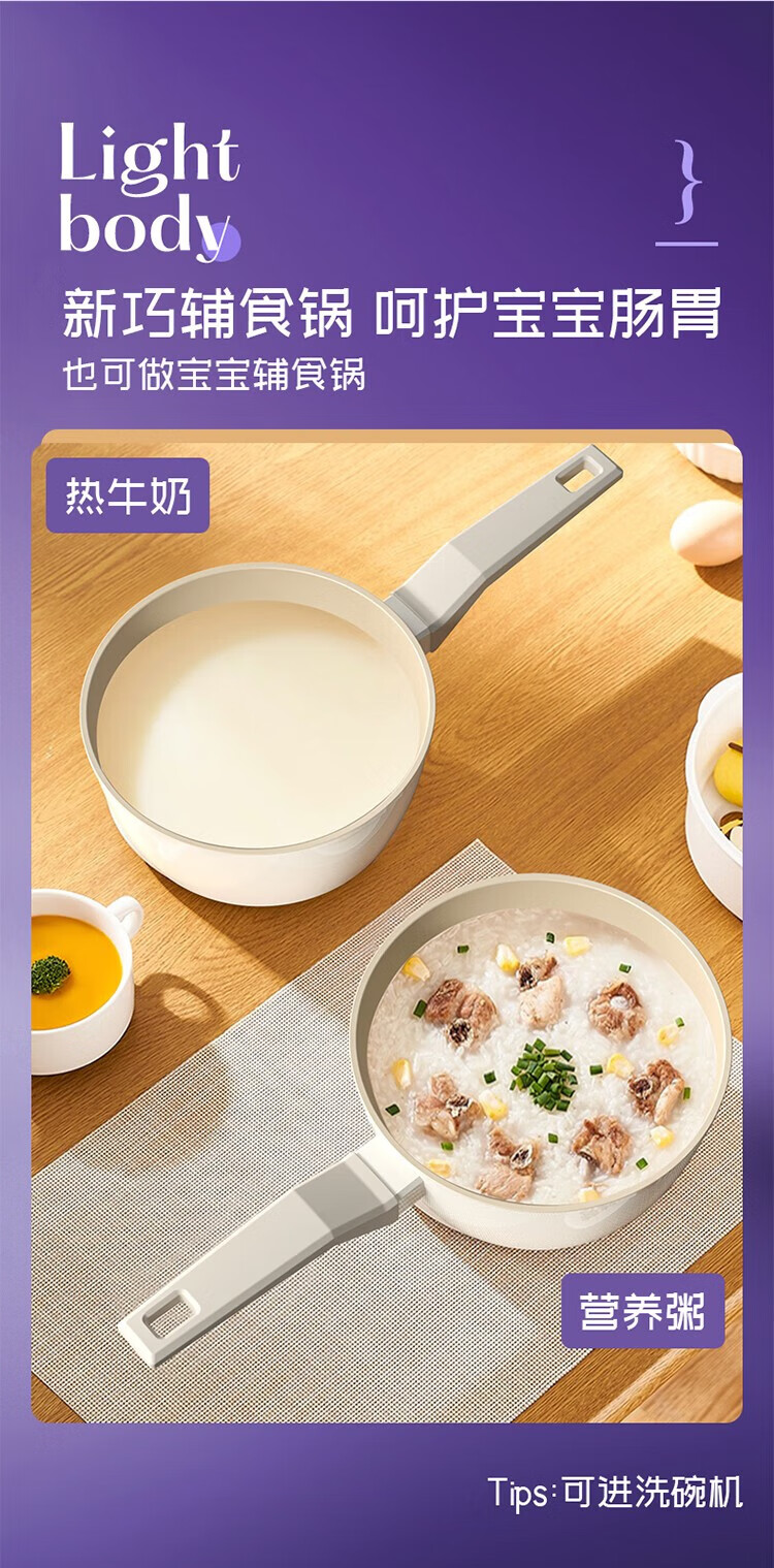 帝伯朗泡面锅炒菜平底煎锅辅食锅组合套装 潮趣系列 流光锆白三件套组合(单位:套) 白色