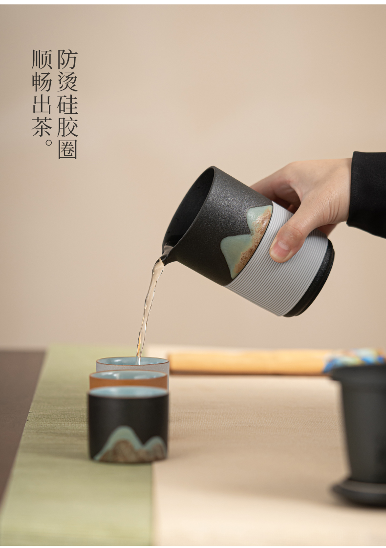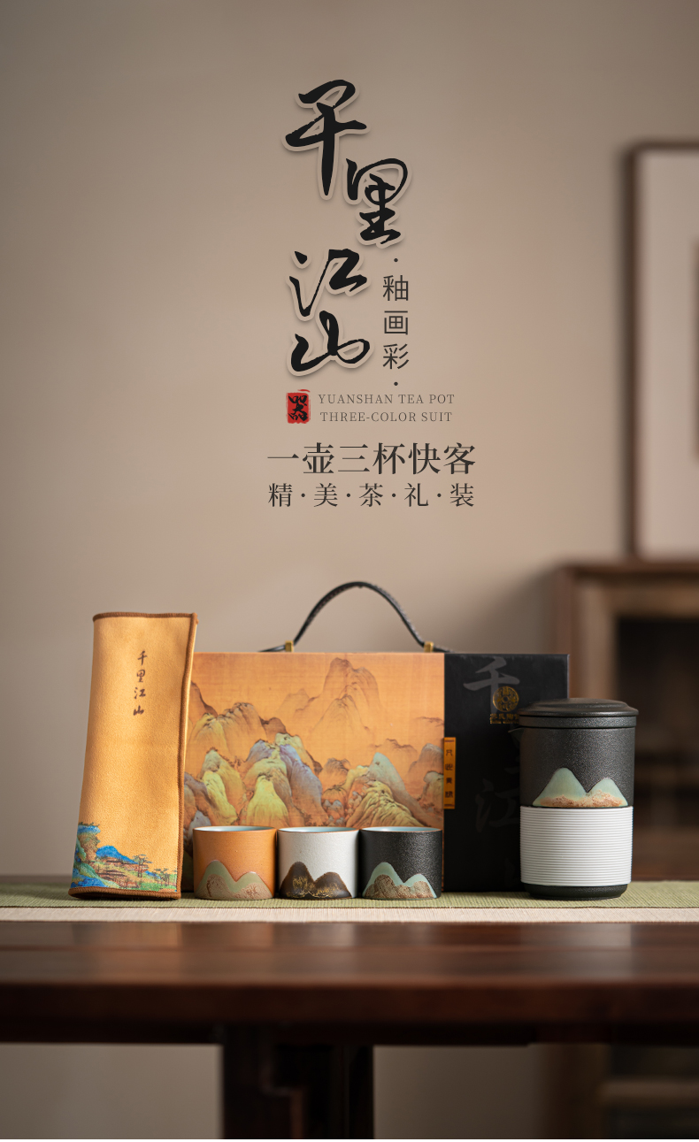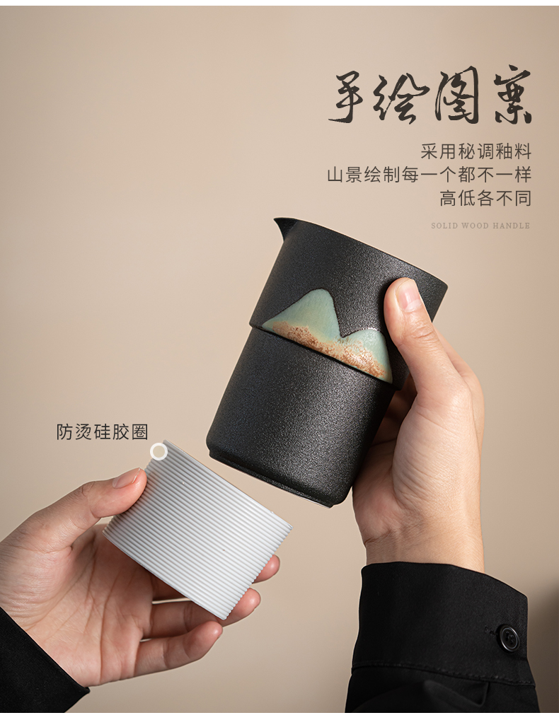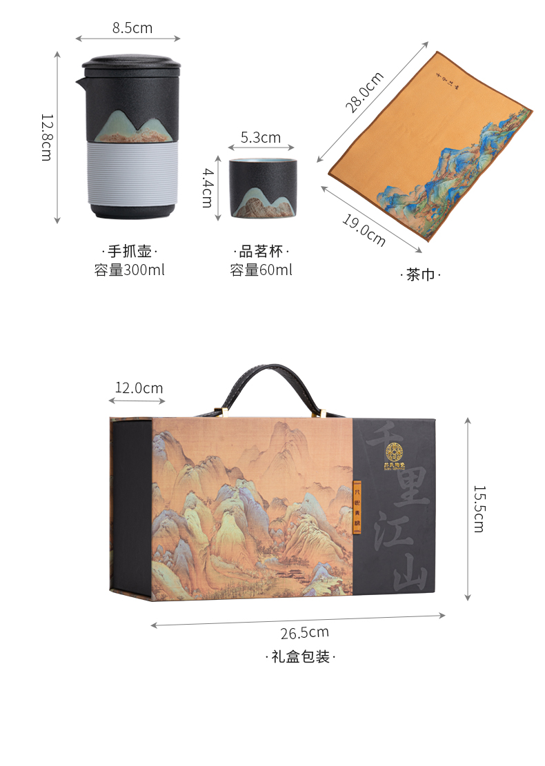 苏氏陶瓷(SUSHI CERAMICS)J0713茶具套装手绘釉画彩手抓壶茶杯礼盒装(单位:套) 黑白棕