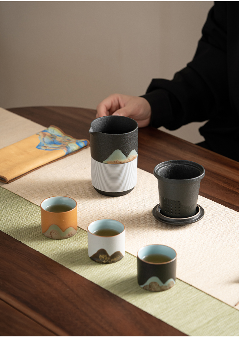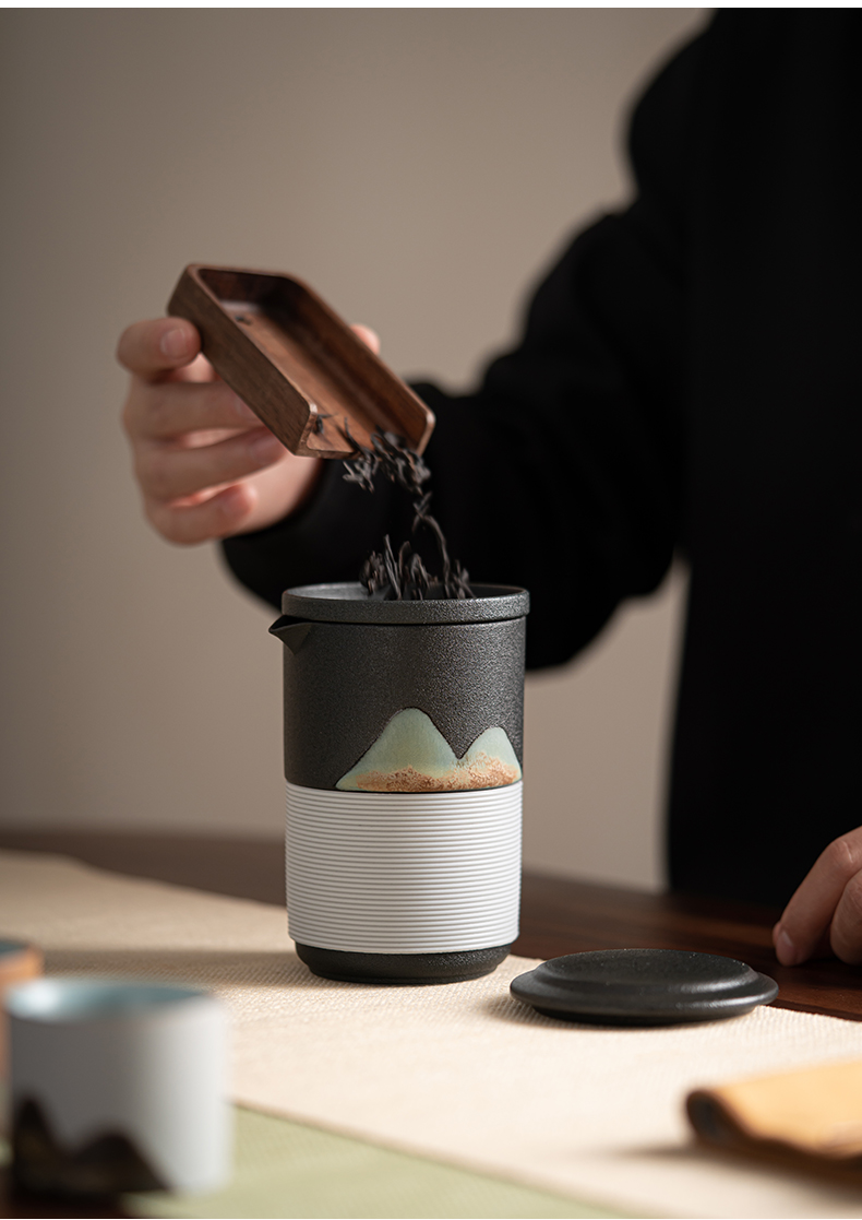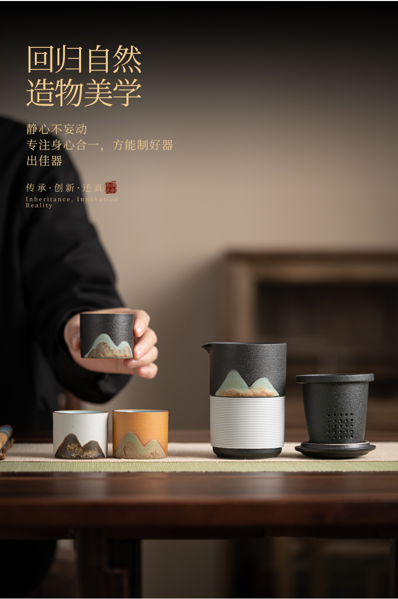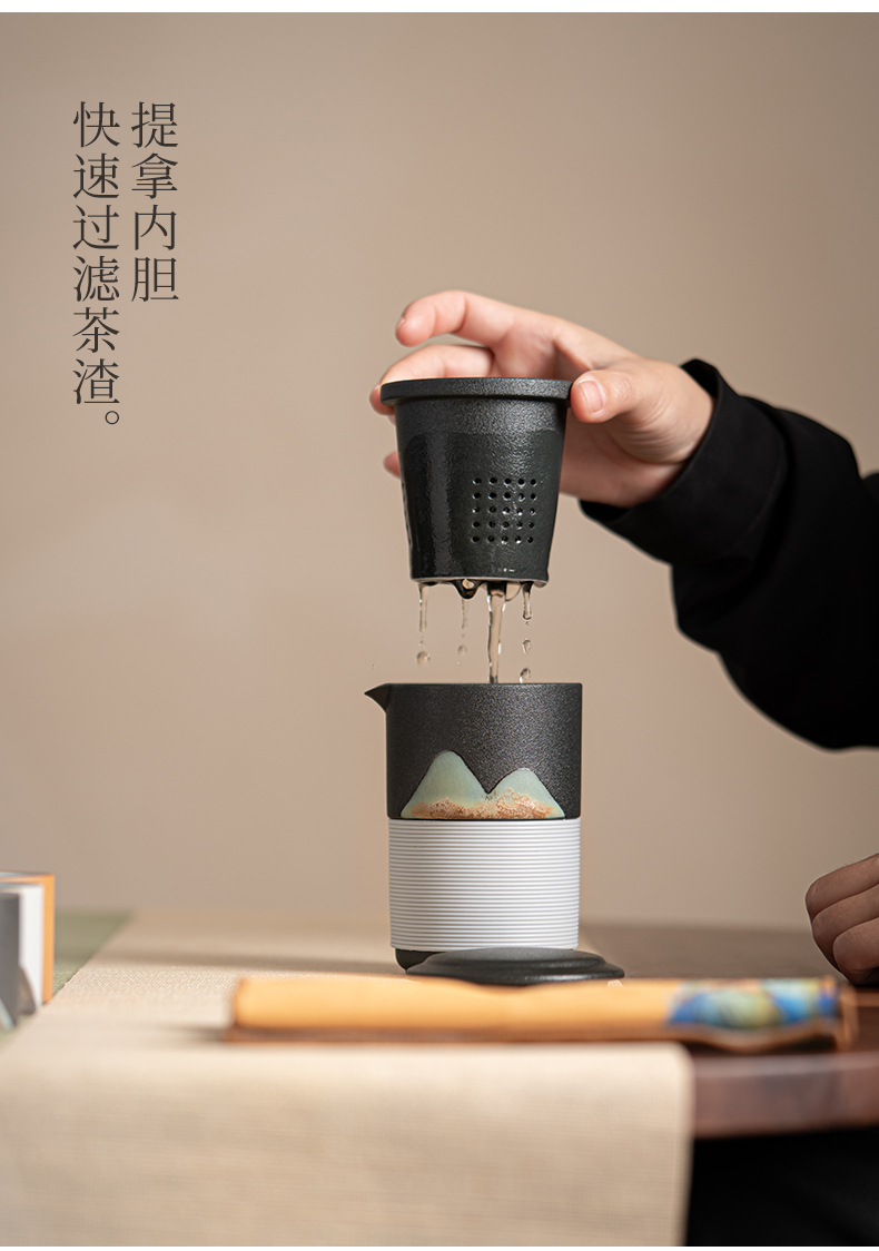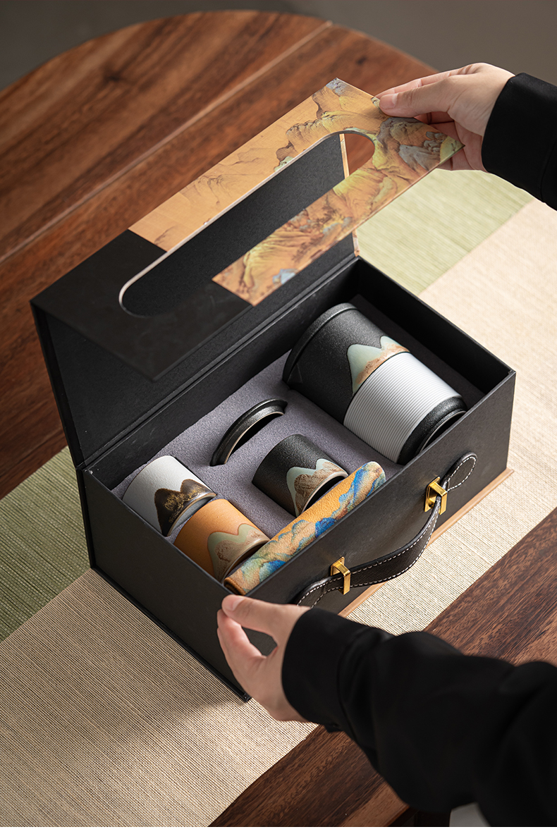 苏氏陶瓷(SUSHI CERAMICS)J0713茶具套装手绘釉画彩手抓壶茶杯礼盒装(单位:套) 黑白棕