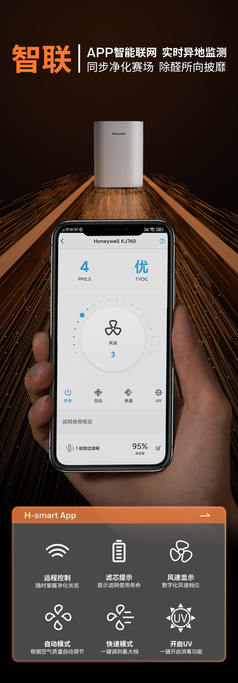 霍尼韦尔(Honeywell)空气净化器 除甲醛除雾霾pm2.5 UV消毒杀菌除过敏原空气/台 本白色