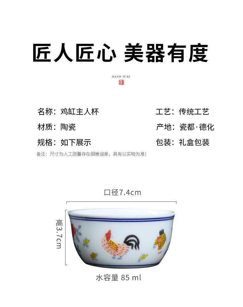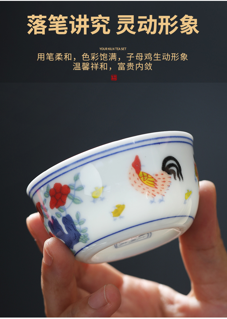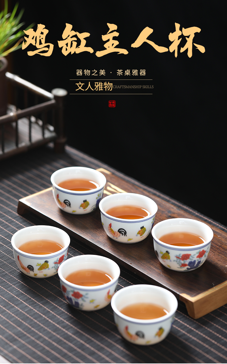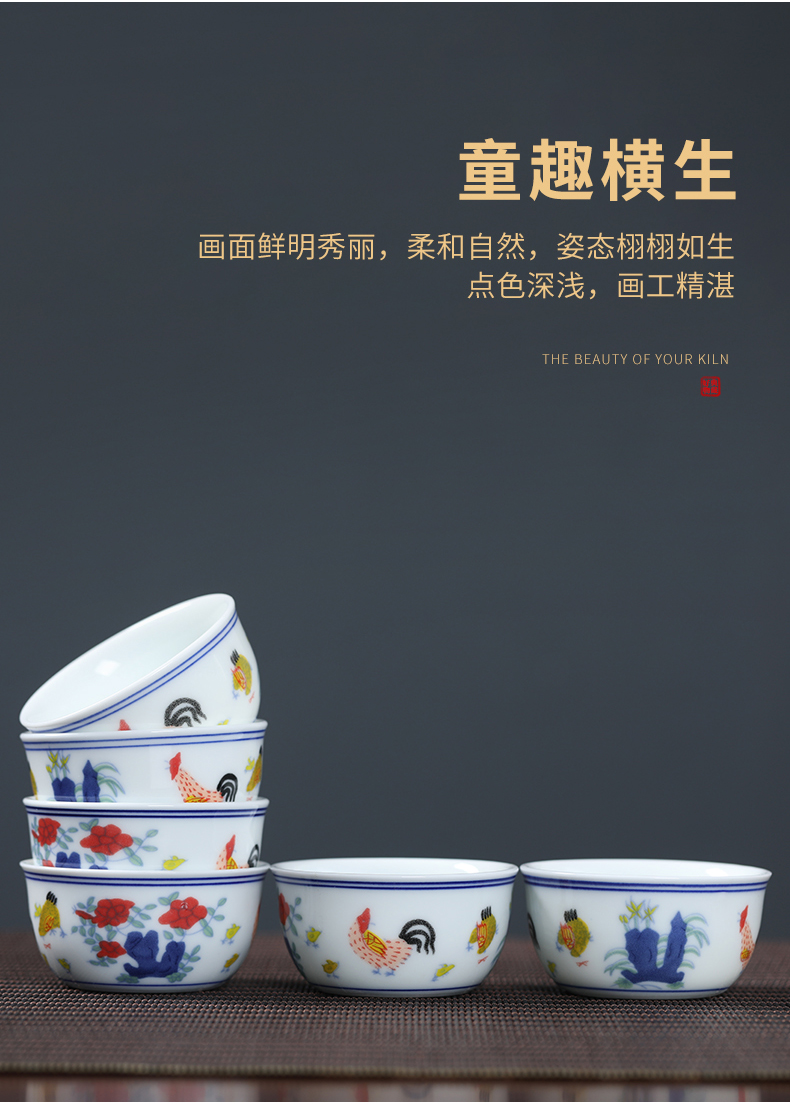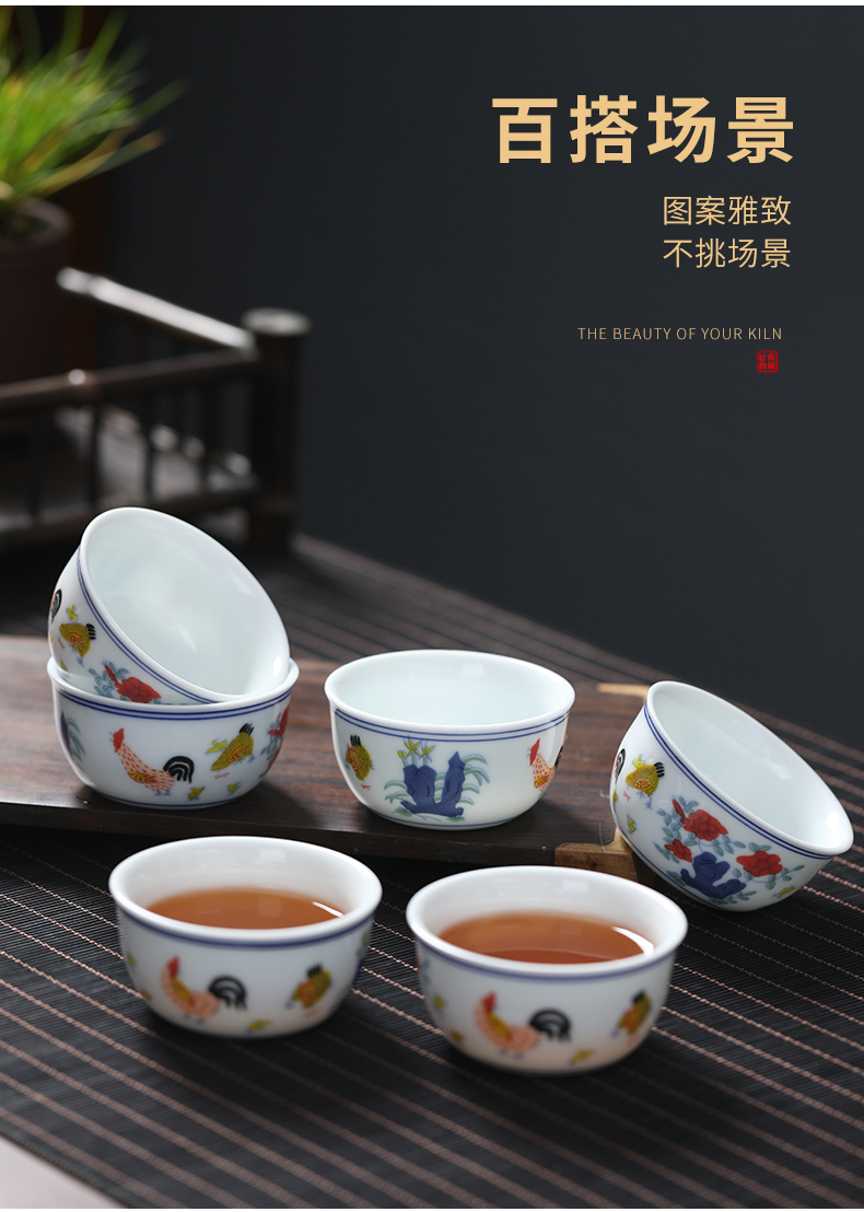 MULTIPOTENT元青 YQ-GYT-CB-202207-01茶杯明成化斗彩鸡缸杯6个装/套 白色