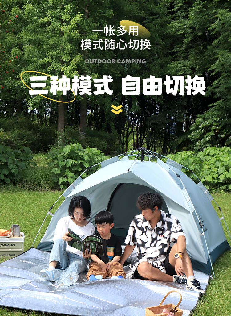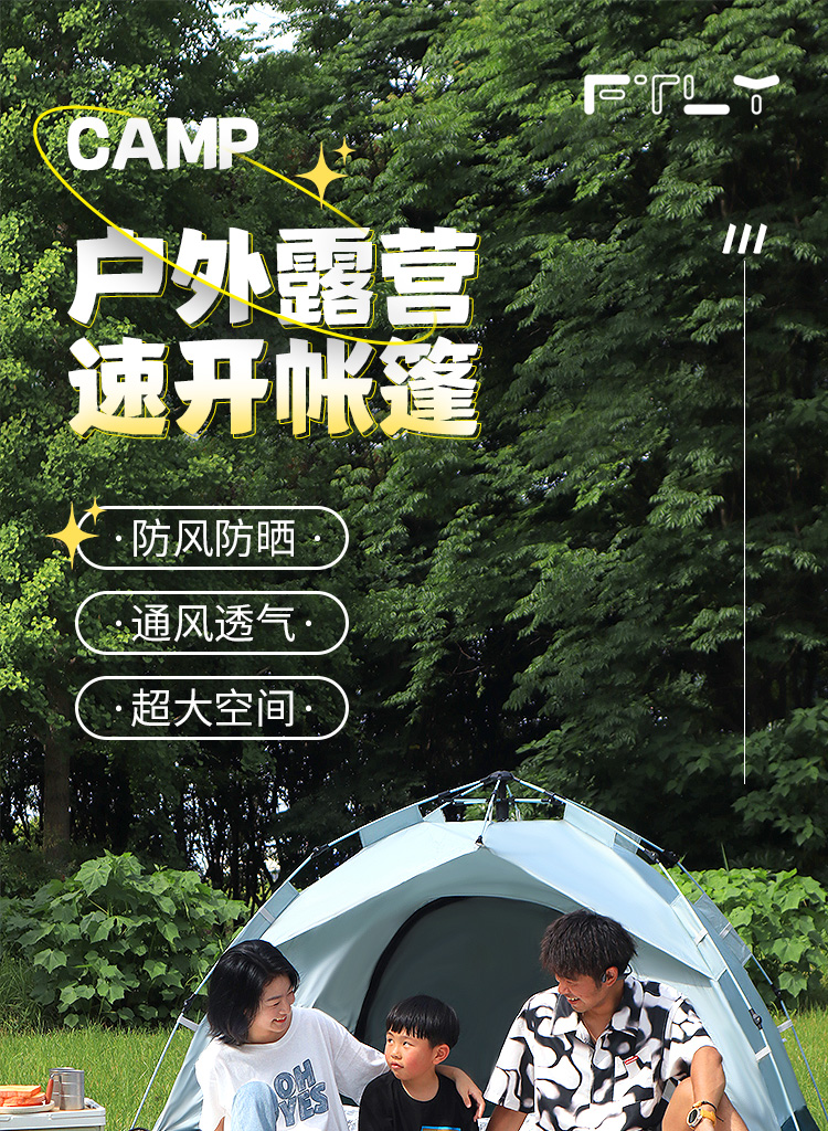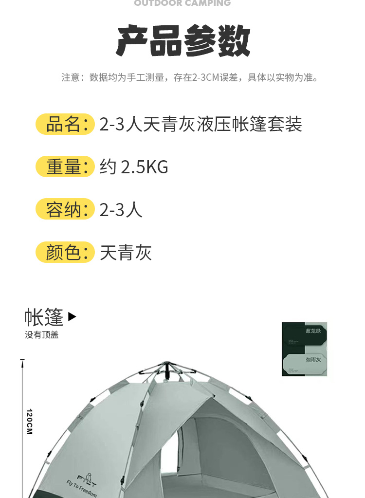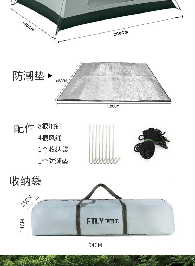FTLY飞图乐2-3人液压帐篷套装-天青灰ZP0901帐篷+防潮垫(单位:套) 天青灰