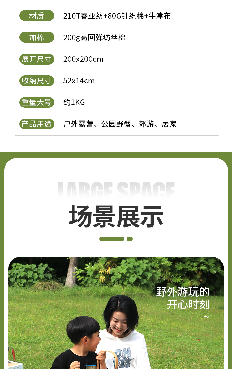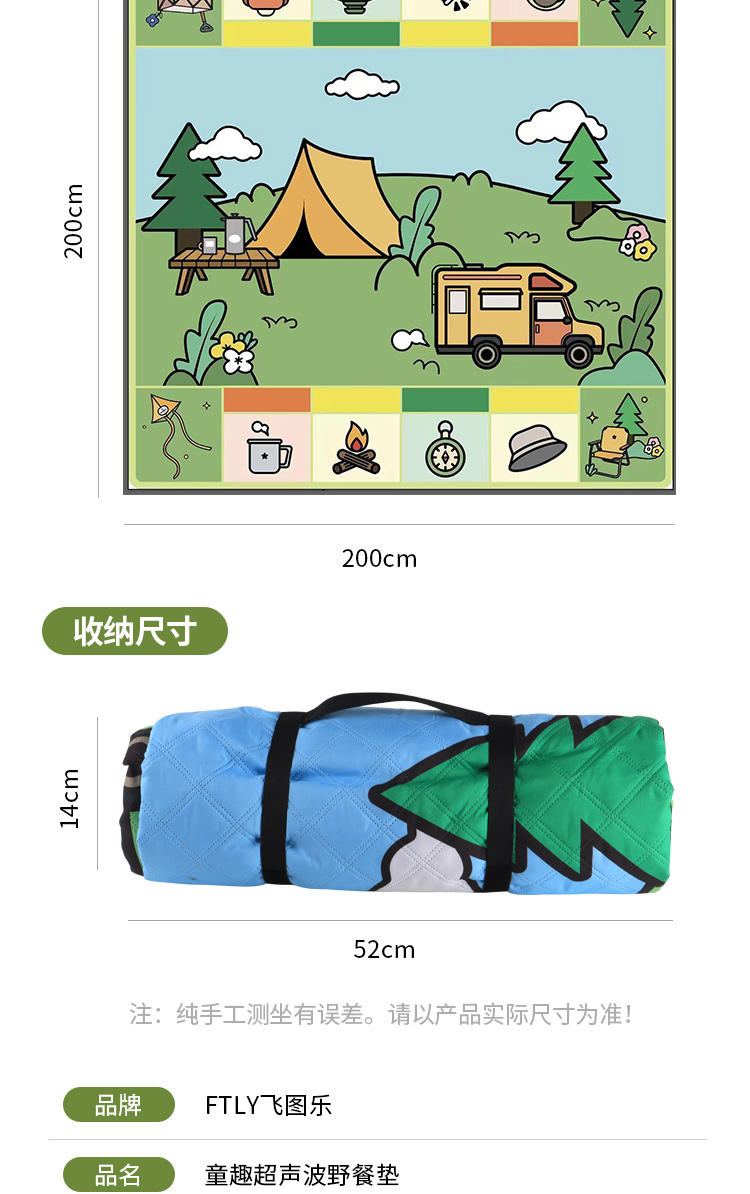 FTLY飞图乐童趣超声波复合野餐垫2*2mYCD0602(单位:个) 露营篝火