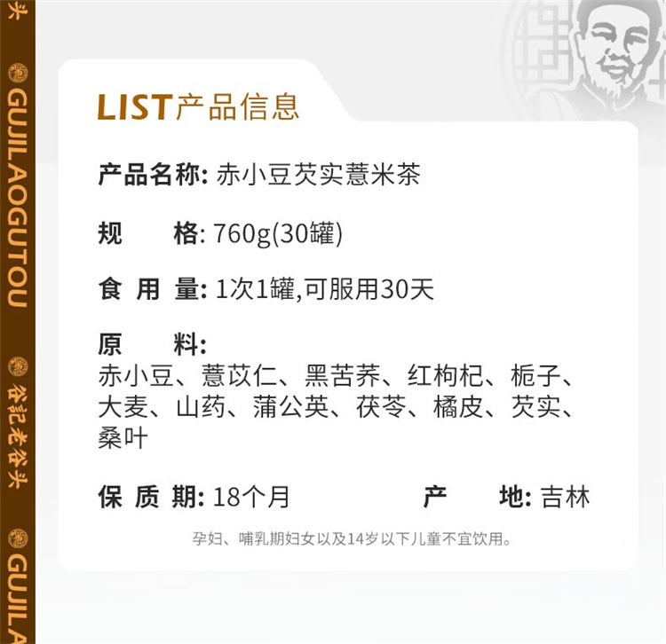 谷记老谷头 赤小豆芡实薏米茶760g(内含30罐)盒