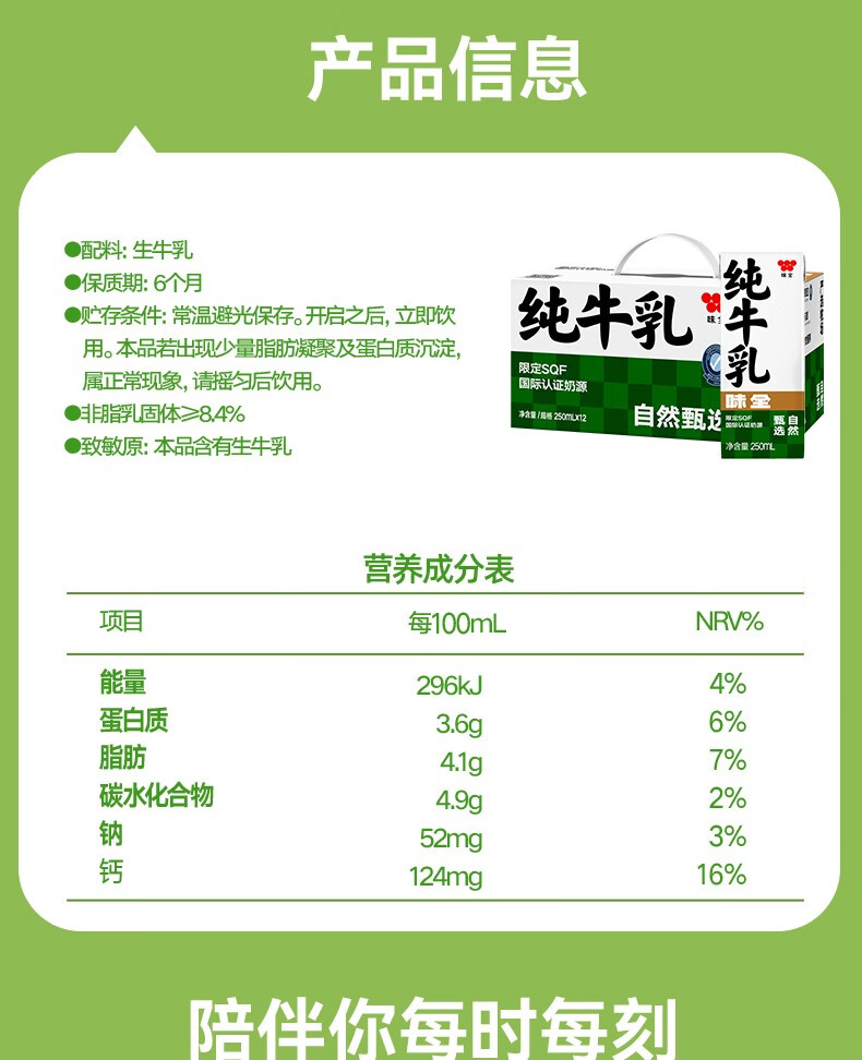 味全 全脂牛奶 常温奶250ml*12(单位:盒) 白色