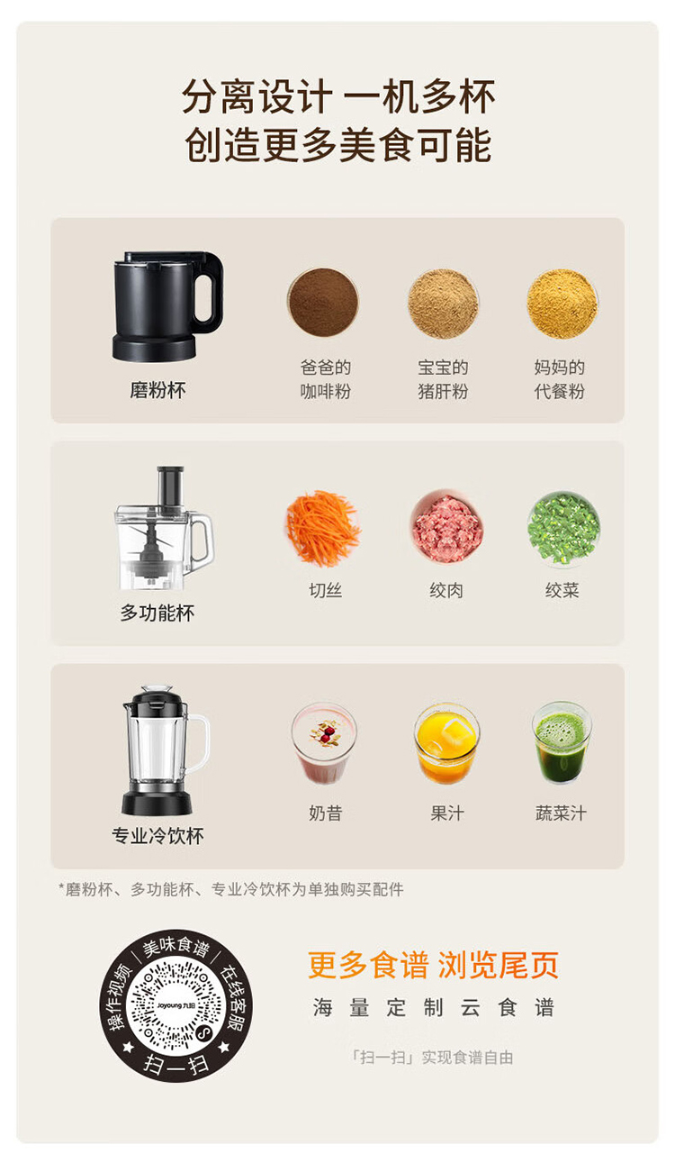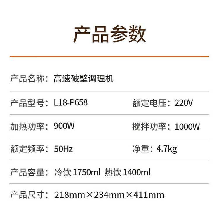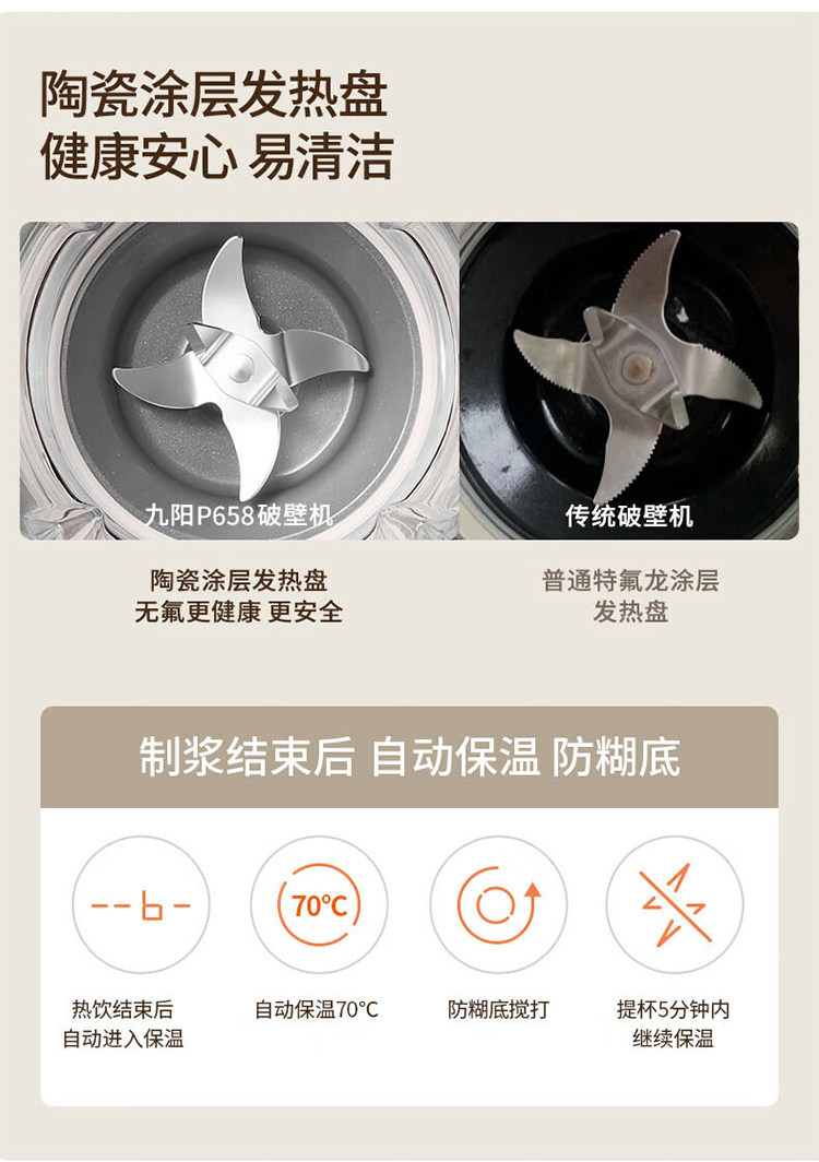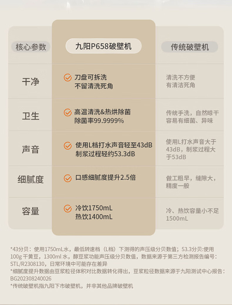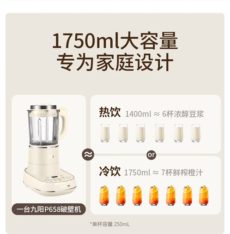 九阳(Joyoung)L18-P658可拆卸刀头破壁机低音1.75L配磨粉杯(单位:台) 象牙色