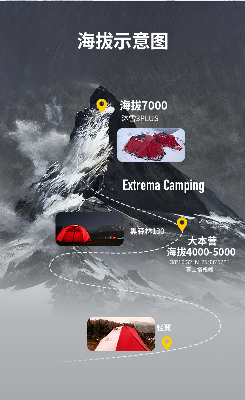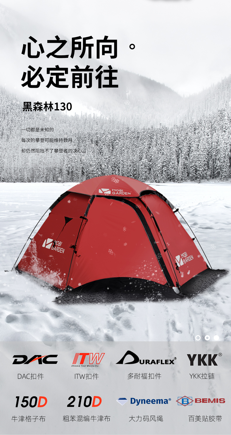 牧高笛(MOBIGARDEN) 帐篷 户外露营高山雪地帐篷折叠便携双人防暴雨防雪防暴风加厚登山帐/顶 旭日红 旭日红