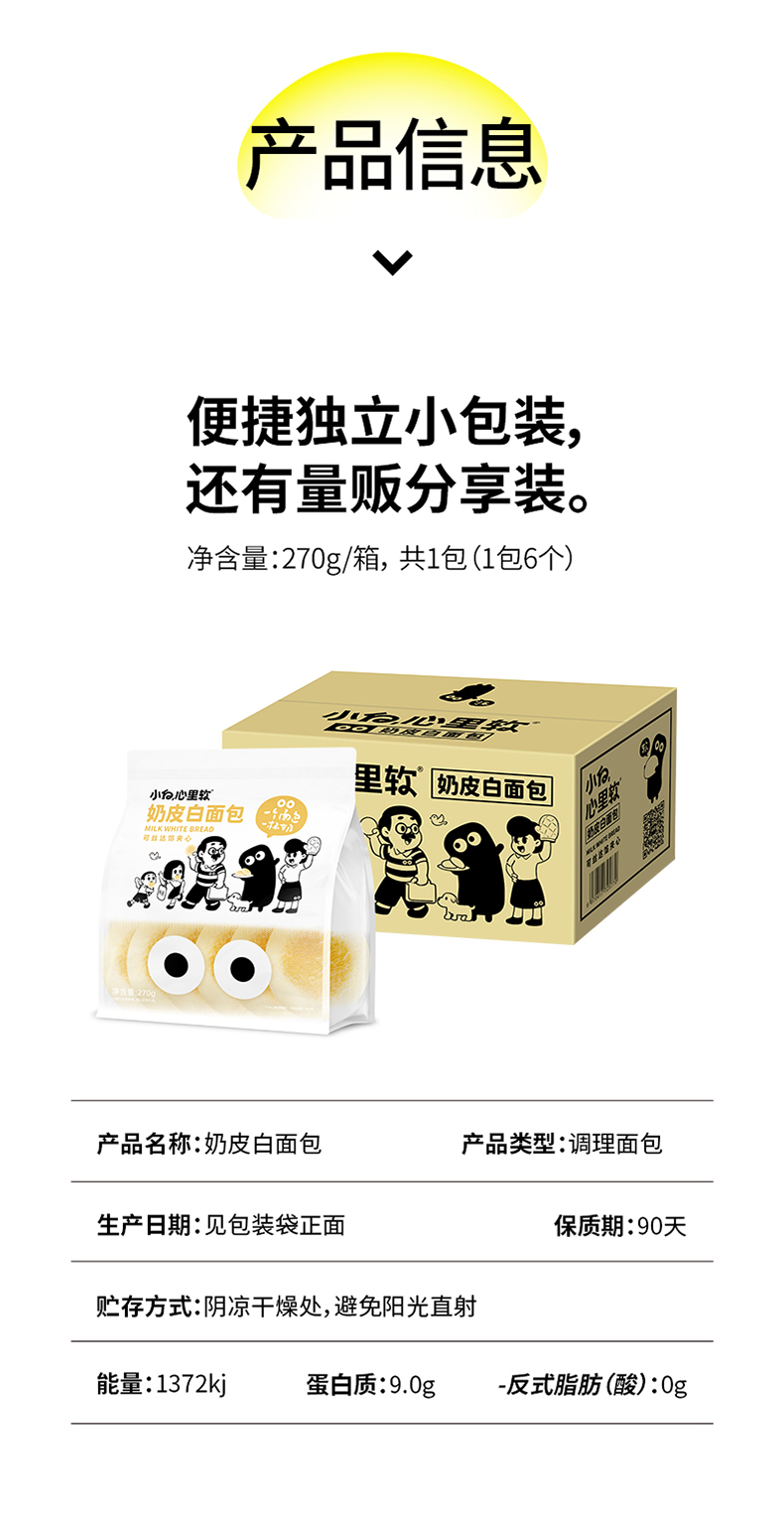 小白心里软 原味奶白皮面包270g*2袋(单位:组) 象牙色