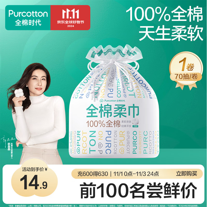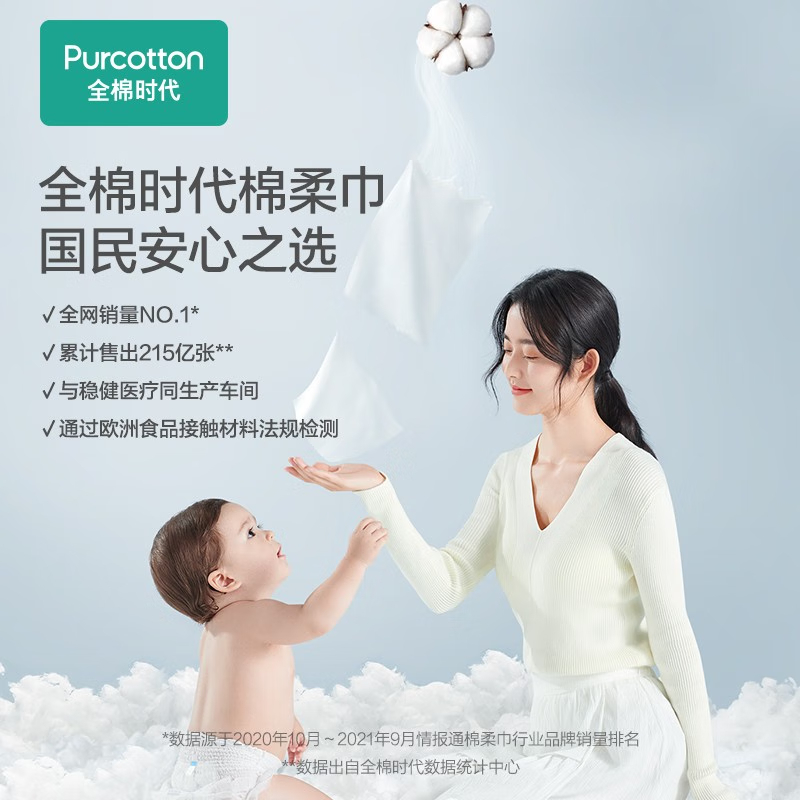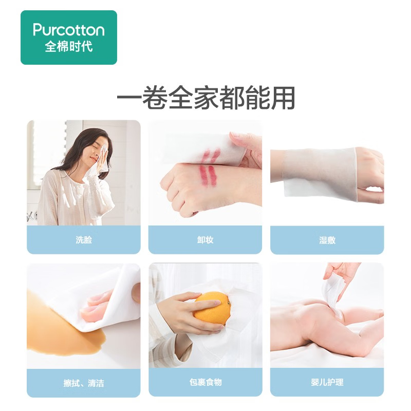 全棉时代全棉柔巾卷45g平纹,200mm*200mm,70片/包(单位:包) 白色