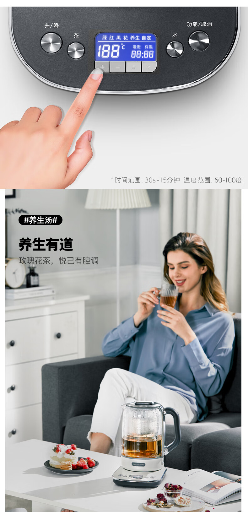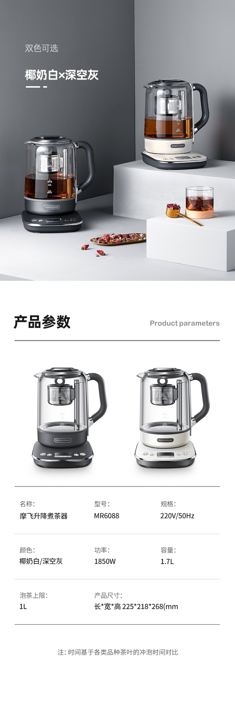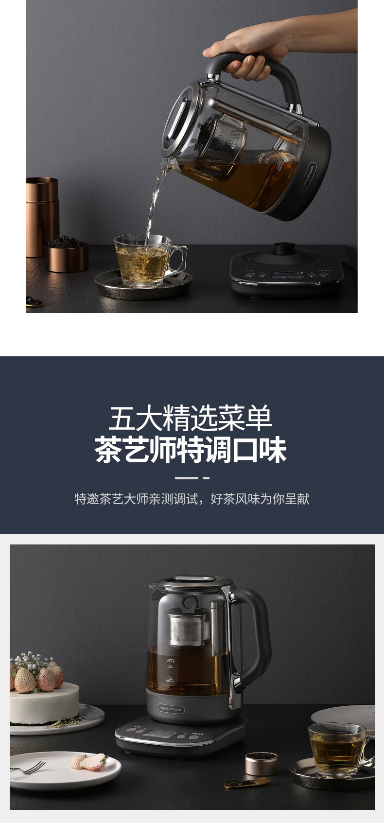 摩飞电器(Morphyrichards)养生壶煮茶器煮茶壶智能升降电水壶黑茶MR6088 台 深空灰