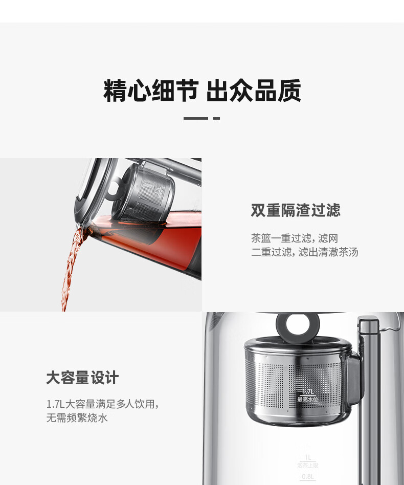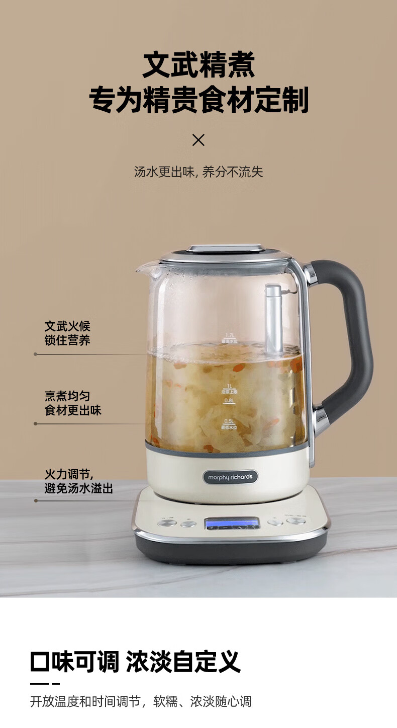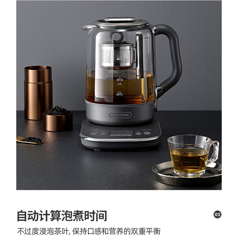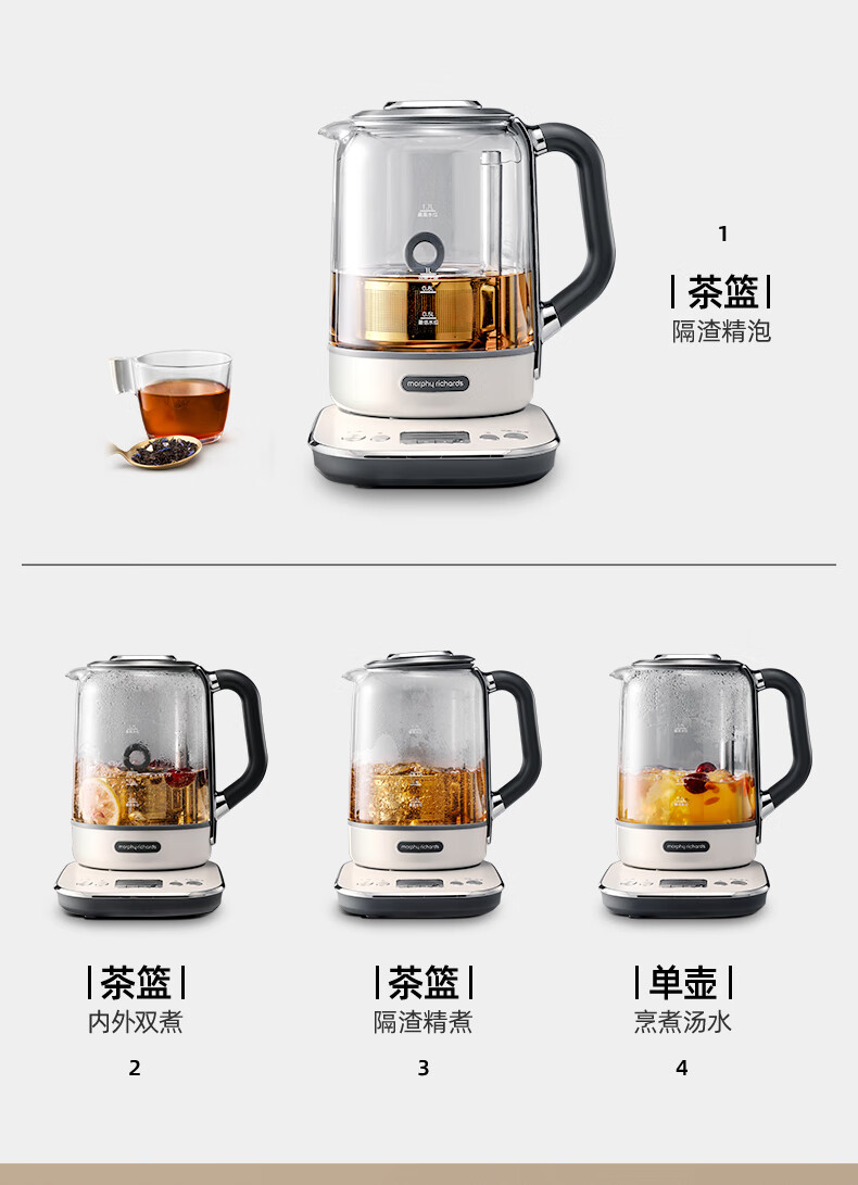 摩飞电器(Morphyrichards)养生壶煮茶器煮茶壶智能升降电水壶黑茶MR6088 台 深空灰