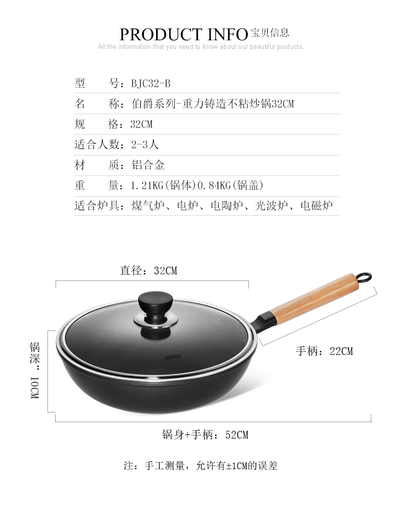欧美达 伯爵系列-重力铸造不粘炒锅30cm BJC30-B(个) 黑色