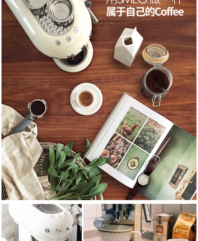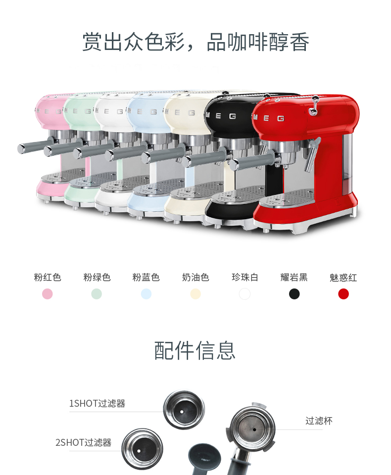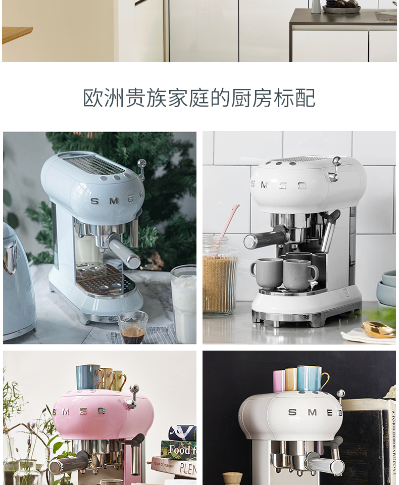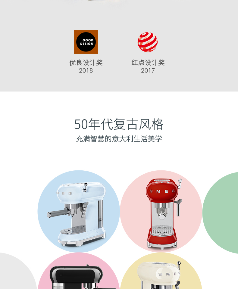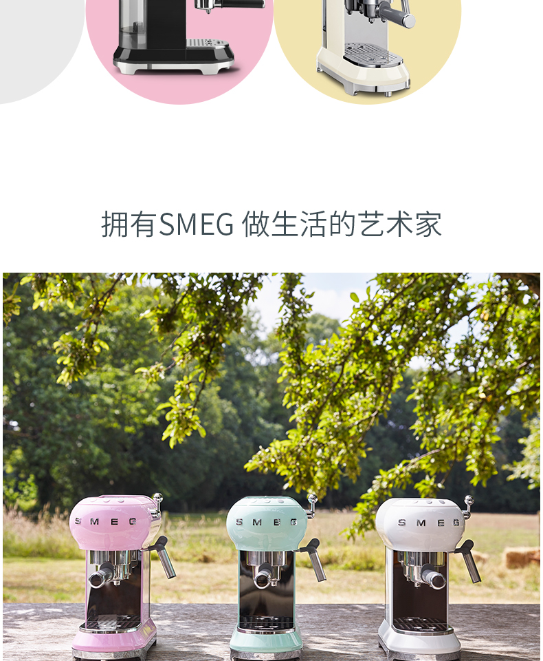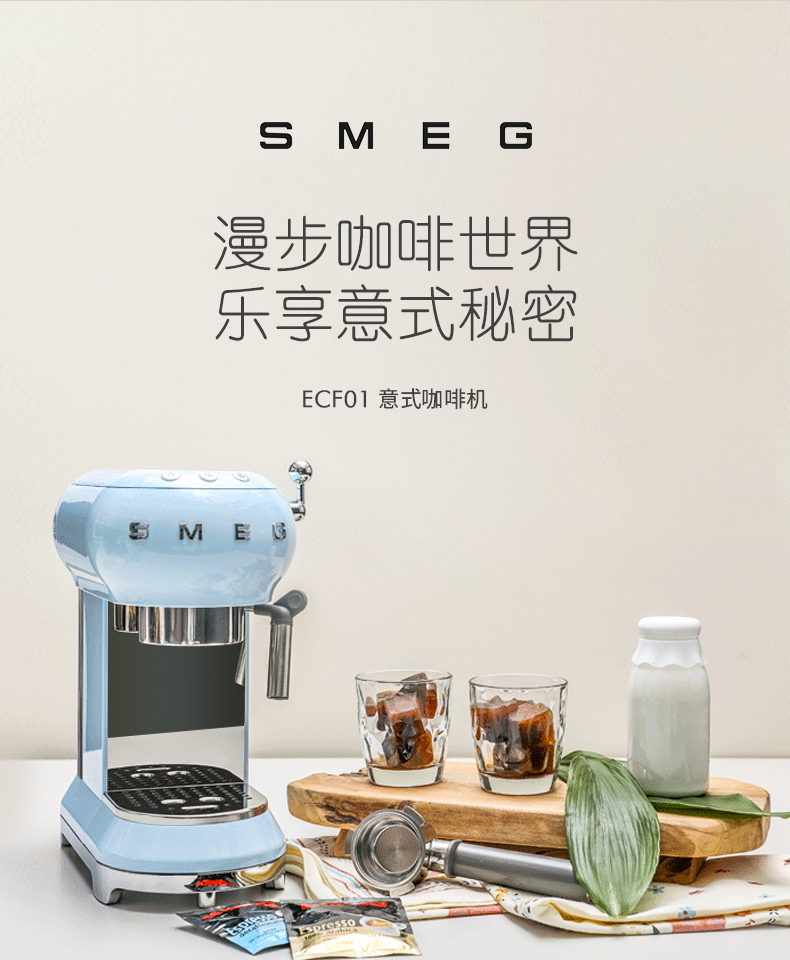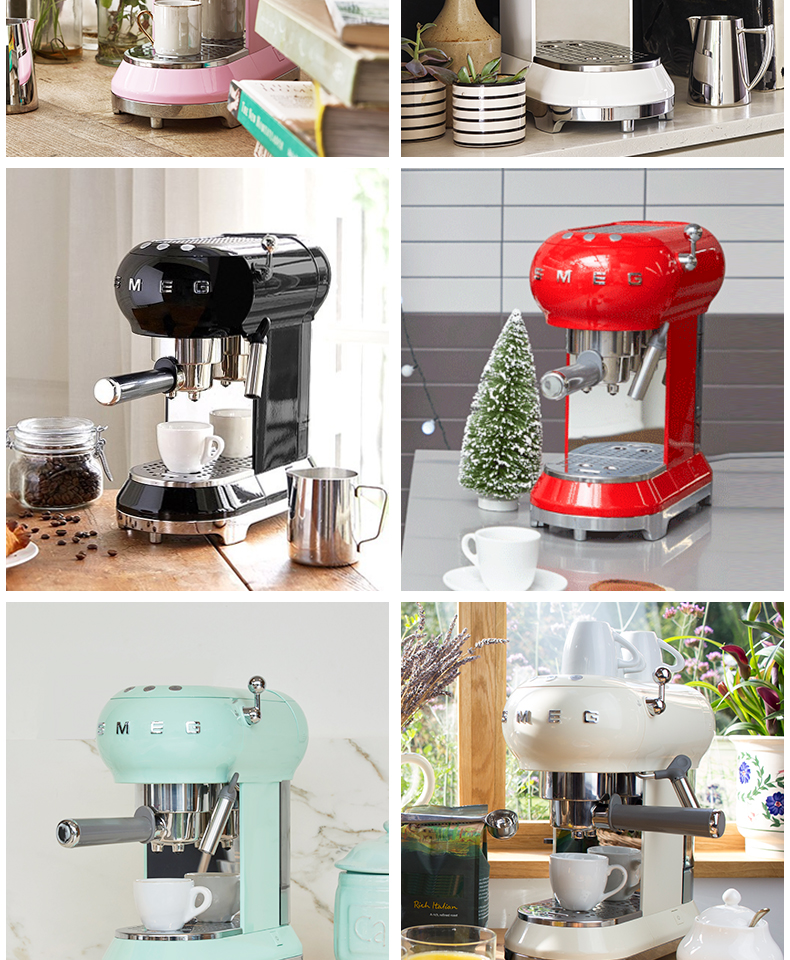 SMEG 斯麦格 意大利进口复古 半自动意式咖啡机家用 带蒸汽奶泡机 ECF01(单位:台) 白色
