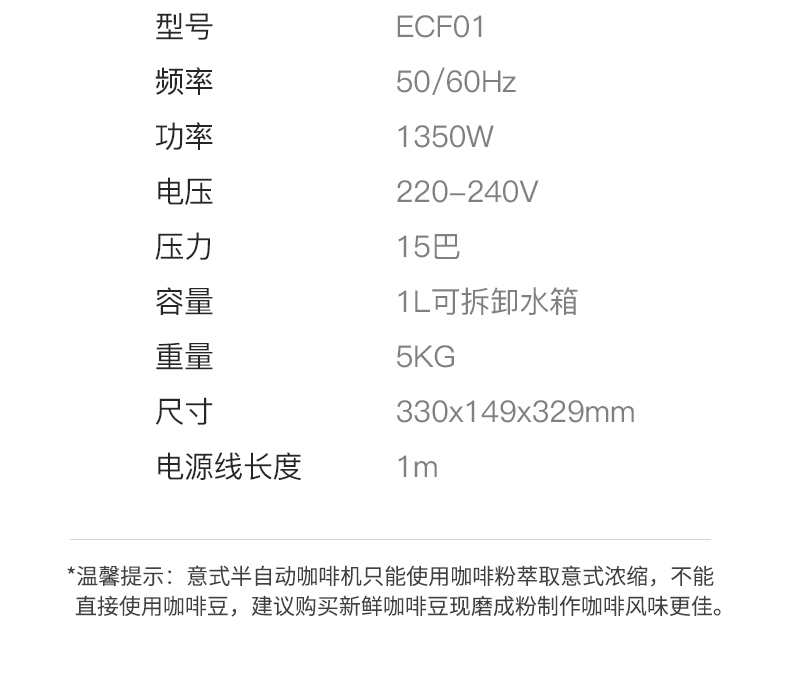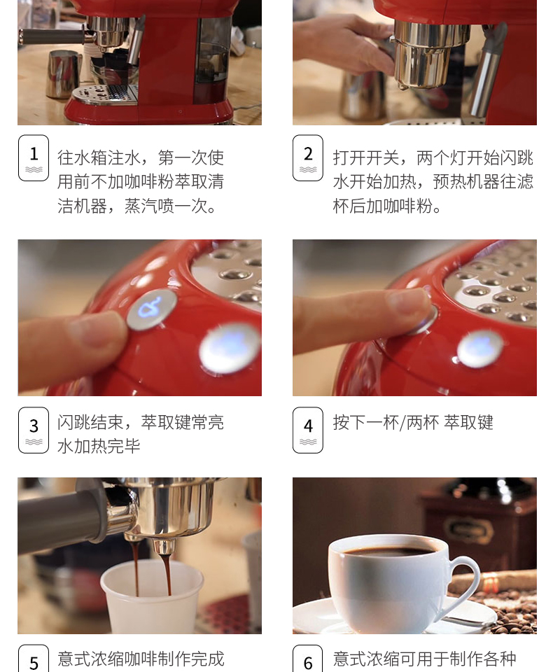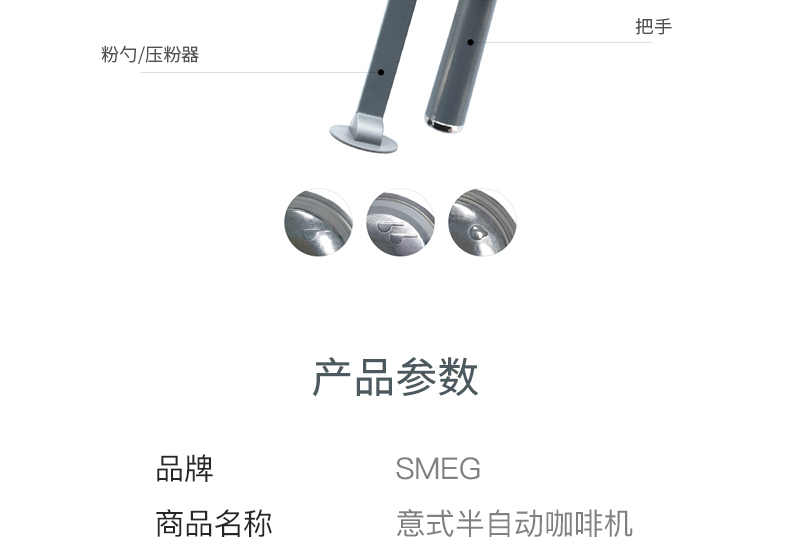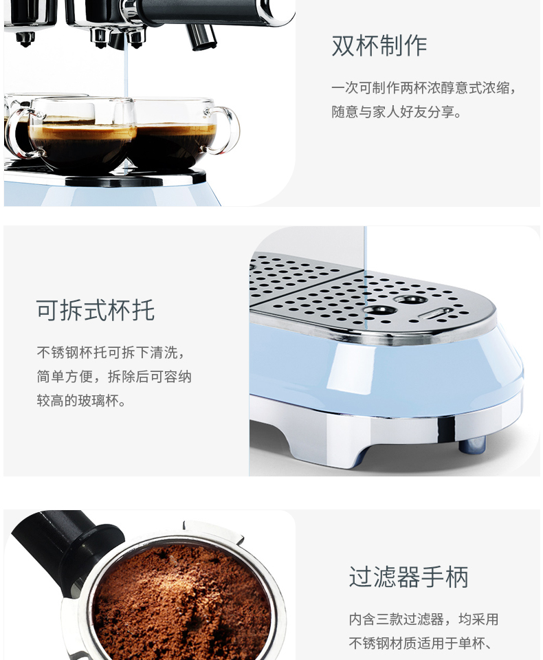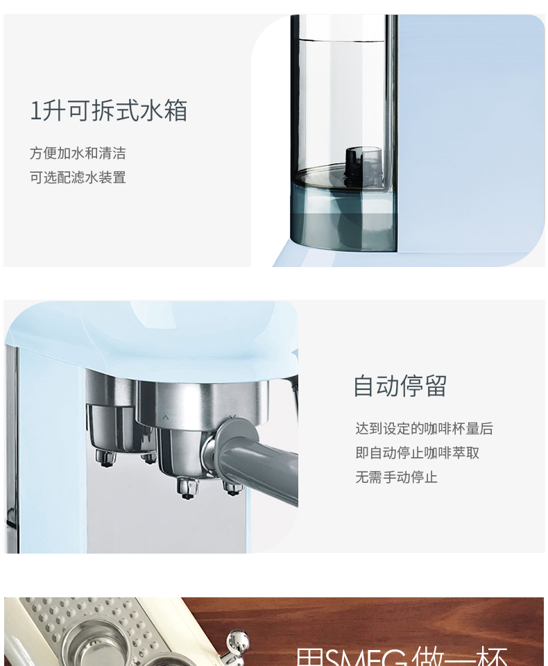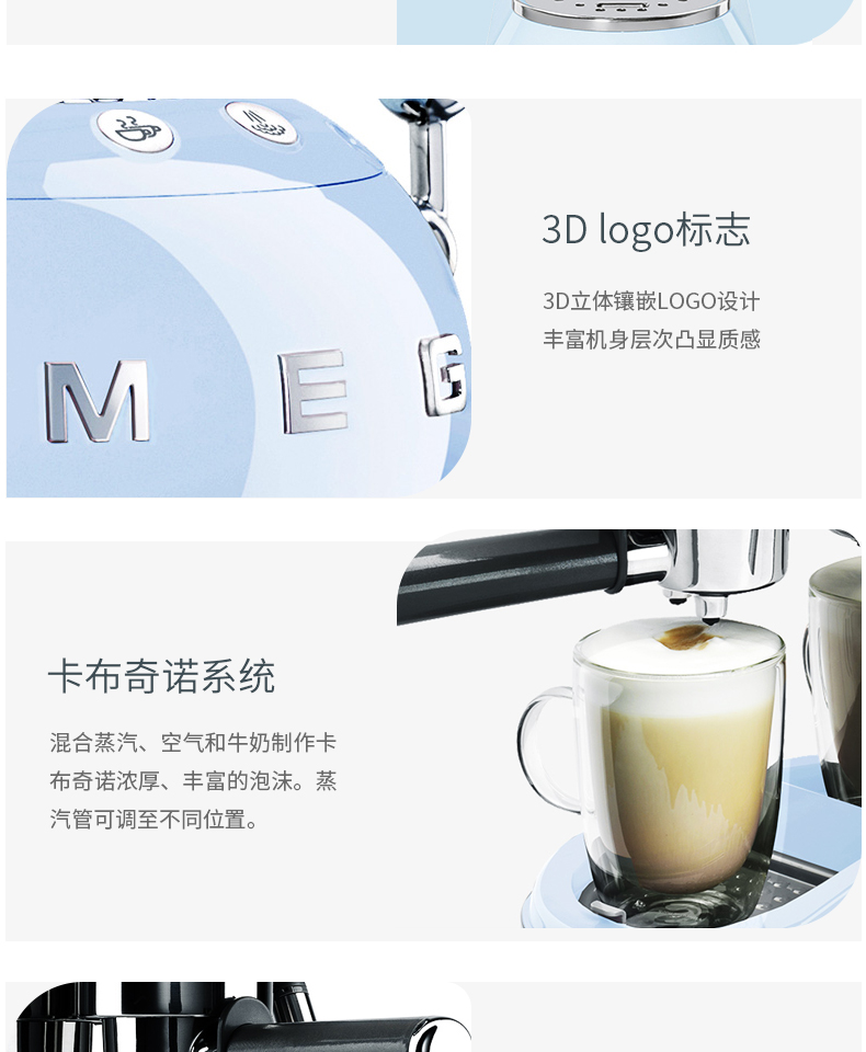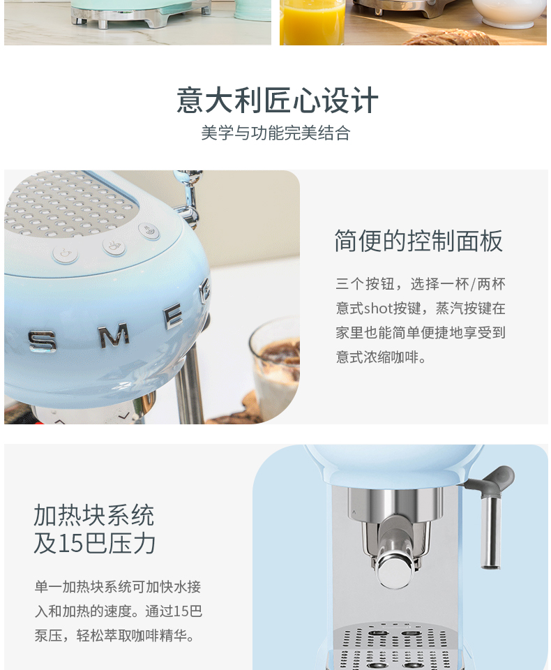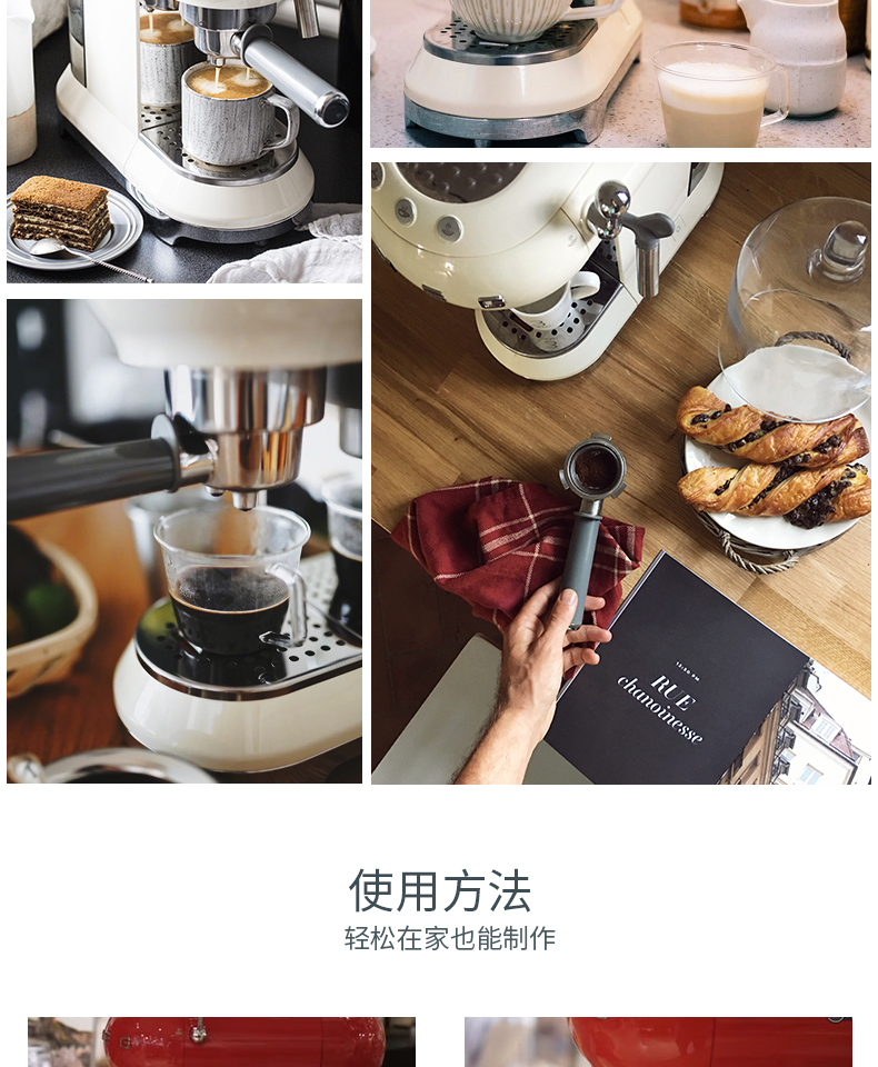 SMEG 斯麦格 意大利进口复古 半自动意式咖啡机家用 带蒸汽奶泡机 ECF01(单位:台) 白色