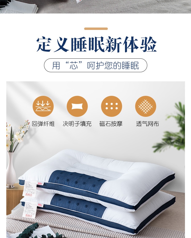 南极人全棉决明子立体安睡枕头芯45*70cm(单位:个) 白色