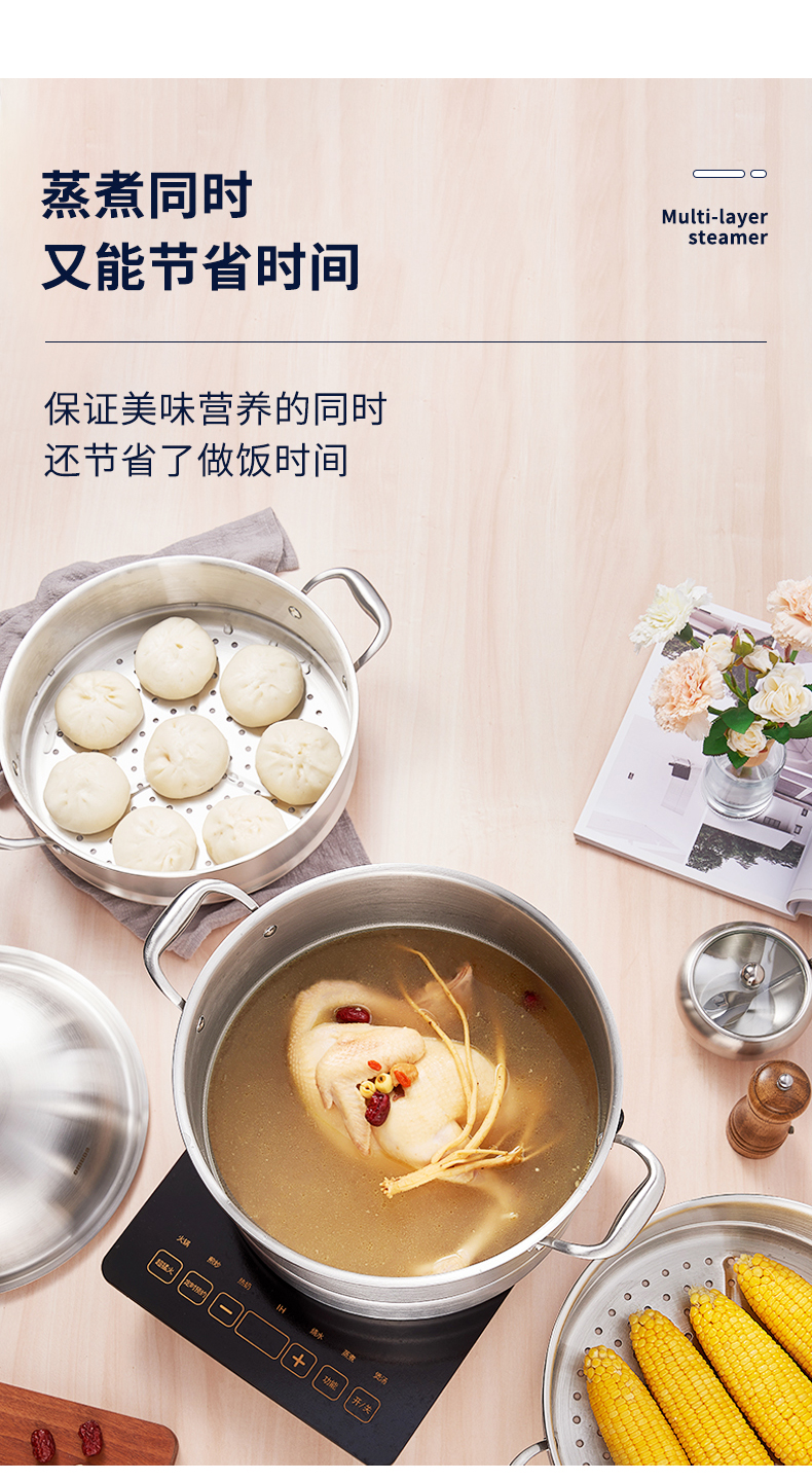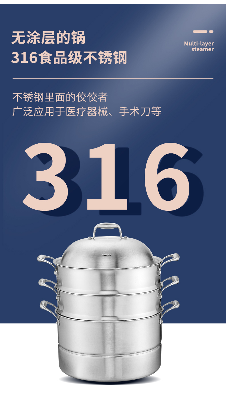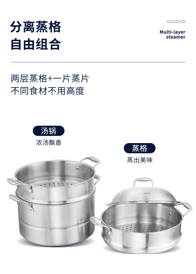 欧美达公爵复合三层钢多用蒸锅28cmGJT28-B 银色