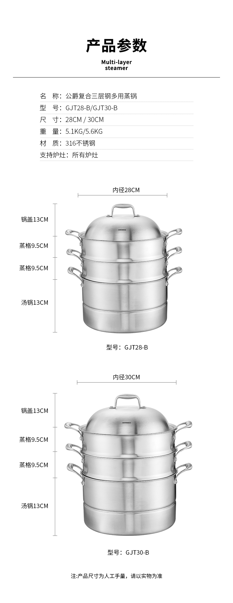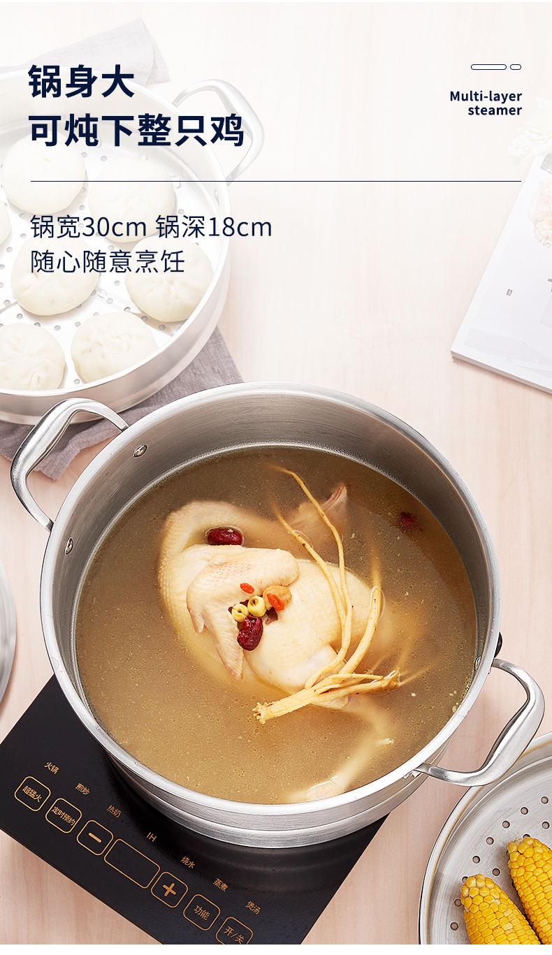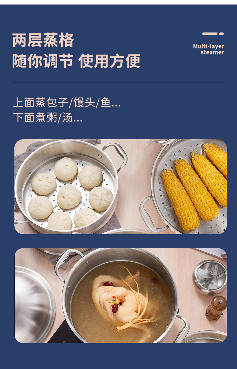 欧美达公爵复合三层钢多用蒸锅28cmGJT28-B 银色