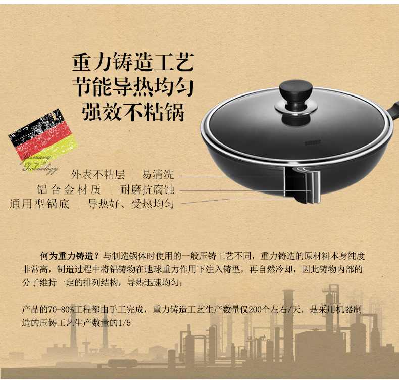 欧美达 伯爵系列-重力铸造不粘炒锅32cm BJC32-B 黑色