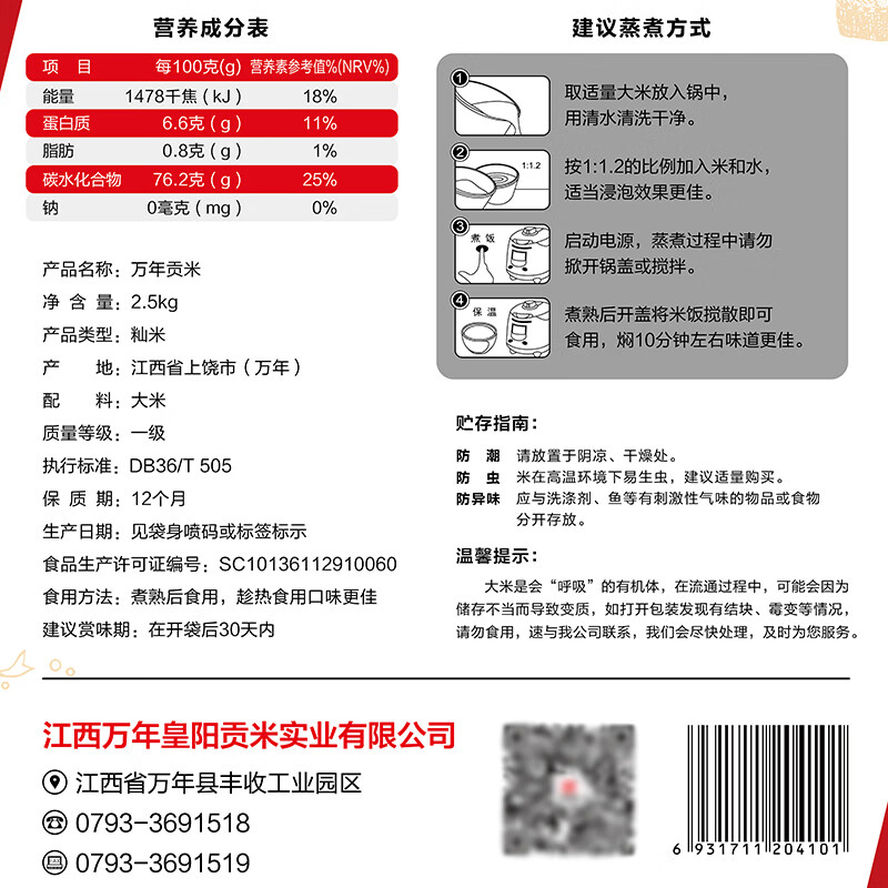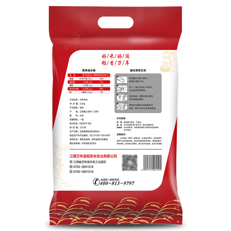 万年贡 丝苗团圆米5kg(单位:袋) 红色