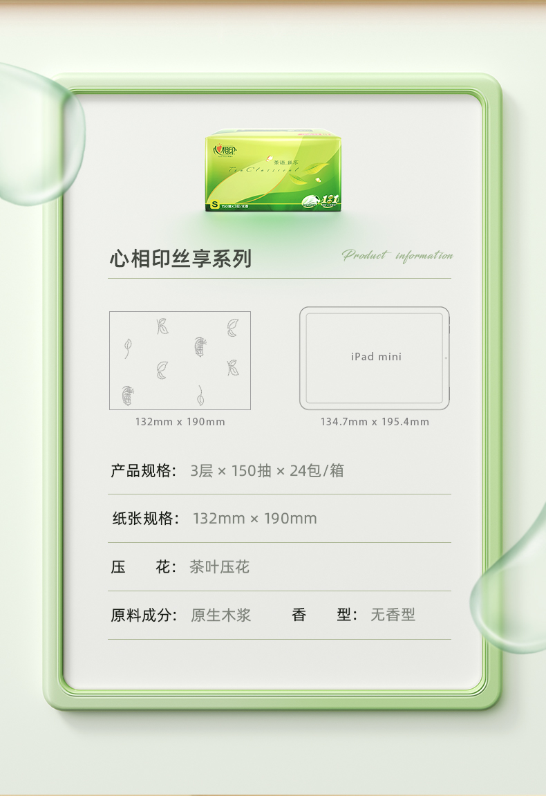 心相印茶语系列抽纸 3层150抽*24包DT15150(单位:箱) 绿色