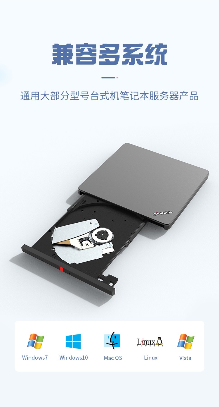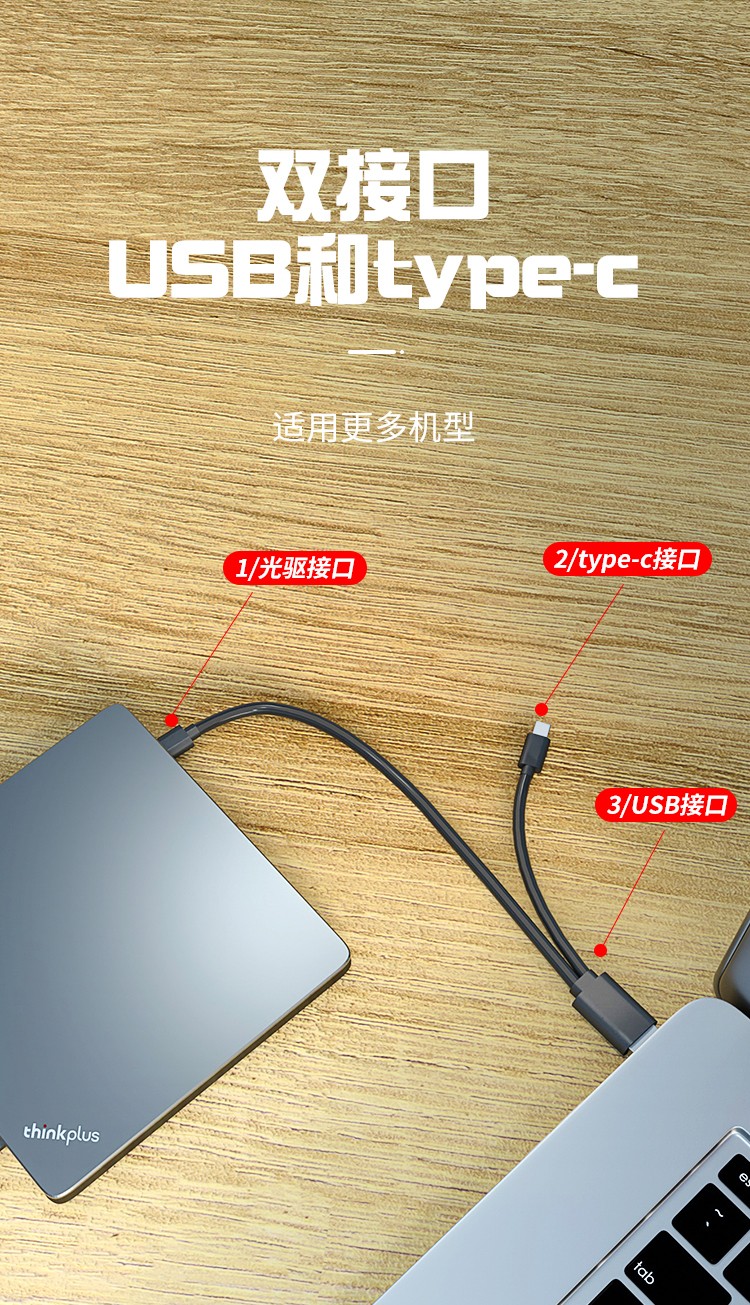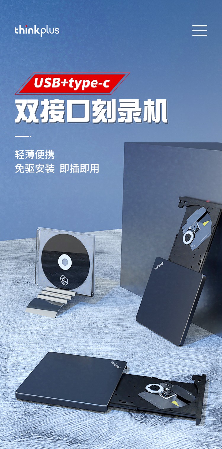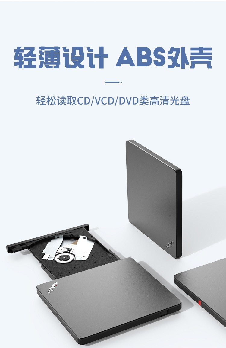 联想ThinkPad光驱笔记本台式机USB/type-c双接口 超薄外置移动光驱DVD刻录机 黑色