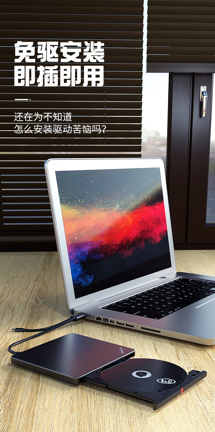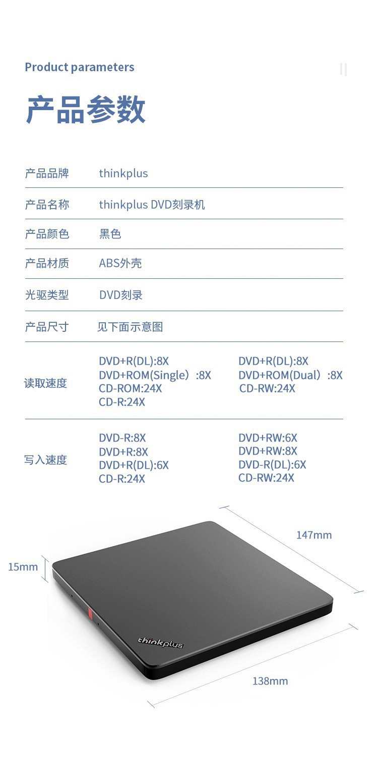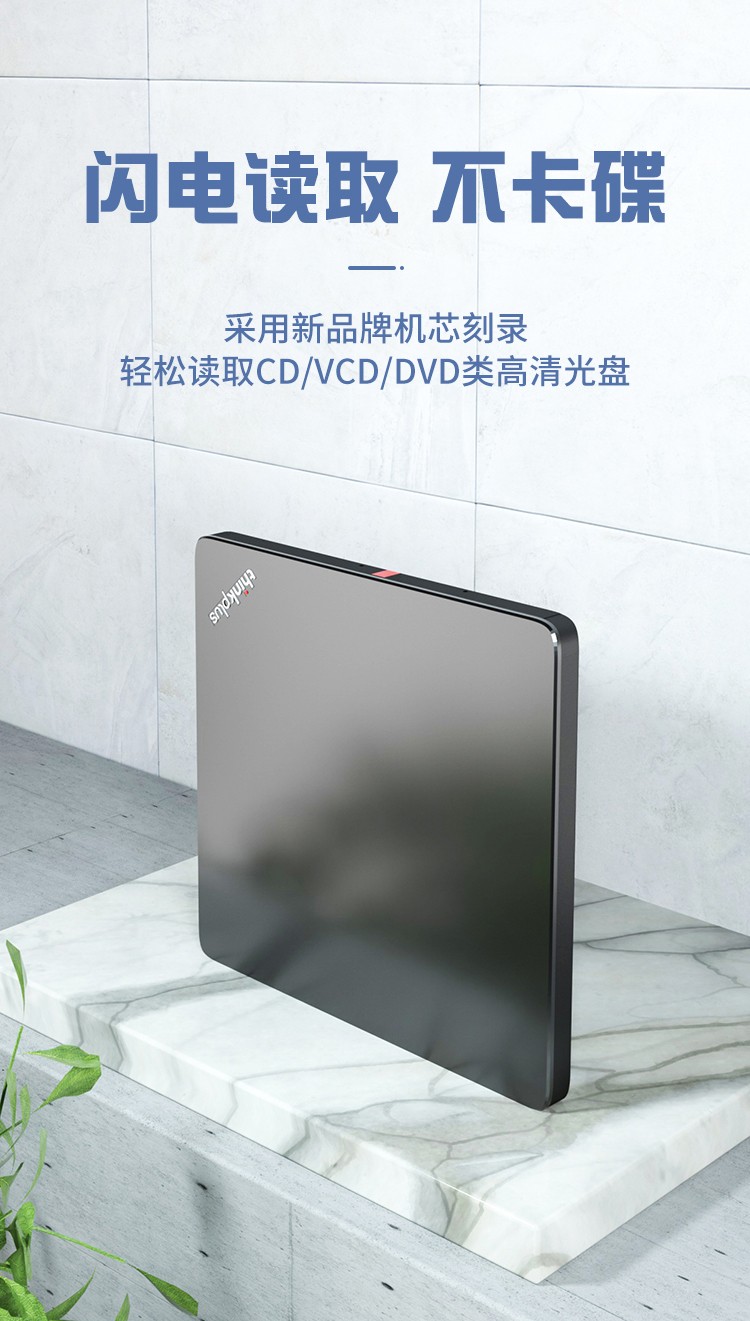 联想ThinkPad光驱笔记本台式机USB/type-c双接口 超薄外置移动光驱DVD刻录机 黑色